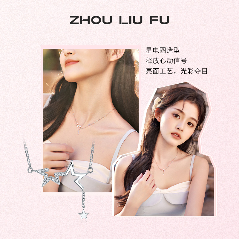 周六福项链女S925纯银浪漫半星符号百搭轻奢小众高级感送女友礼物