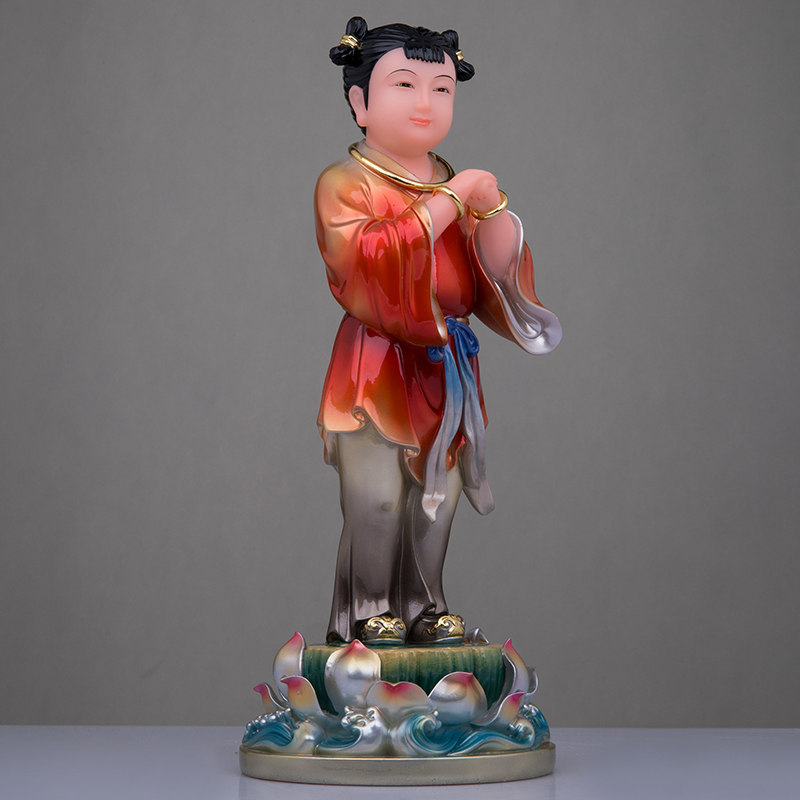 童男童女神像汉白玉太上老君炼丹左右护法佛像家用桌面工艺品摆件