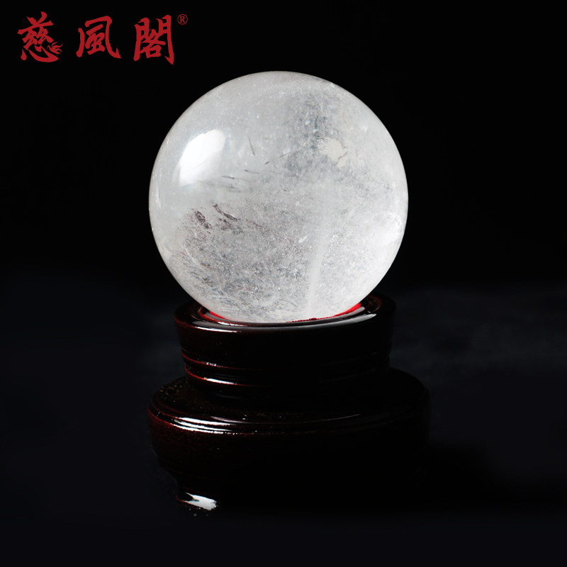 慈风阁白水晶球摆件白色紫色粉客厅招财装饰品天然巴西原石水晶球