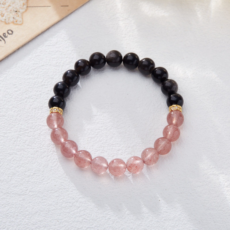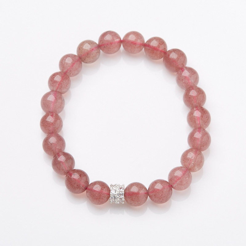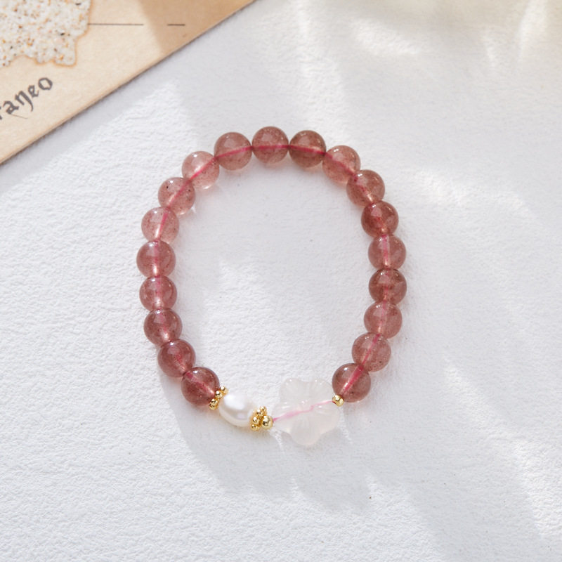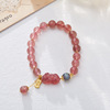 天然草莓晶手链女有钱花貔貅好运粉色水晶宝石设计款手串礼物批发