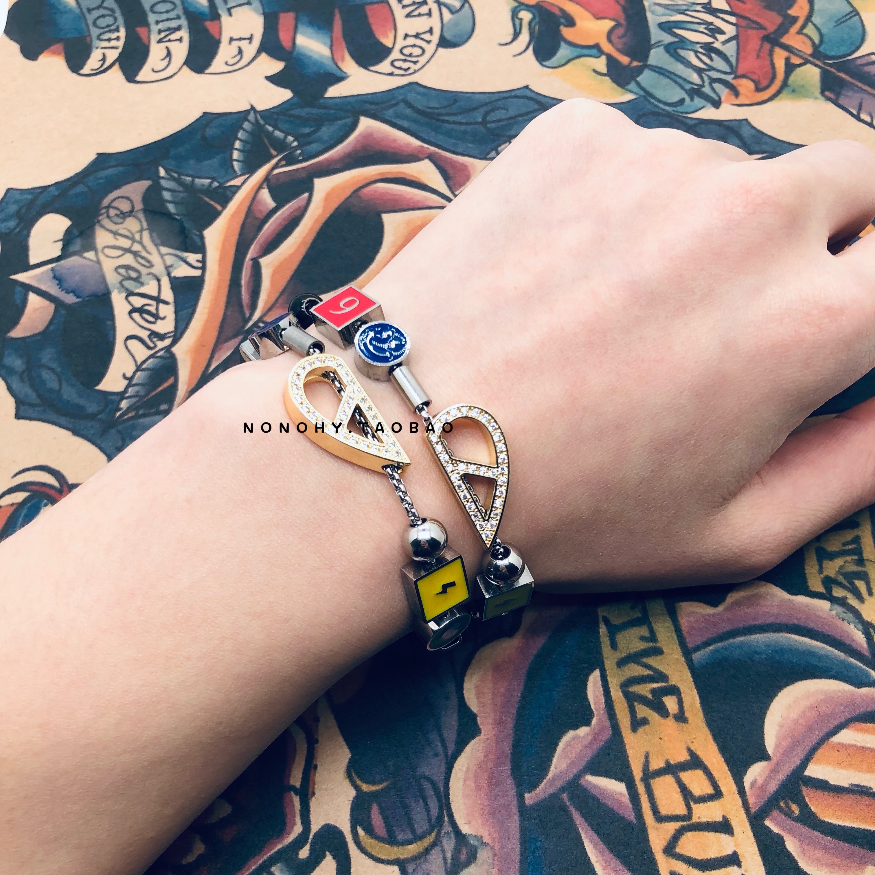 国潮小众设计ins风镶钻爱心字母情侣手链嘻哈风男女情侣生日礼物