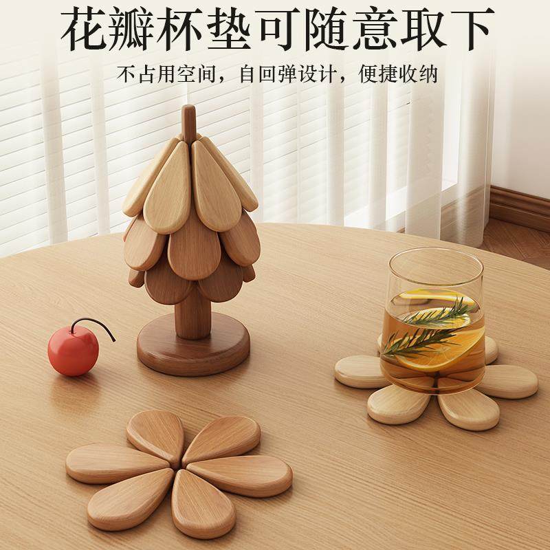 高级感耶诞树隔热垫餐桌摆件创意一棵树实木防烫锅垫折叠杯垫碗垫