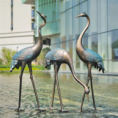 中式彷铜仙鹤雕塑摆件水池现代庭院园林景观装饰品大型玻璃钢模型