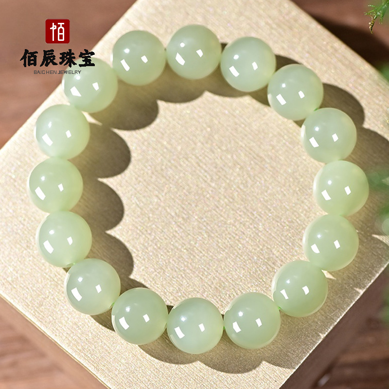 外蒙料新疆和田玉青白玉手串碧玉糖料老形珠手链吊坠饰品推荐