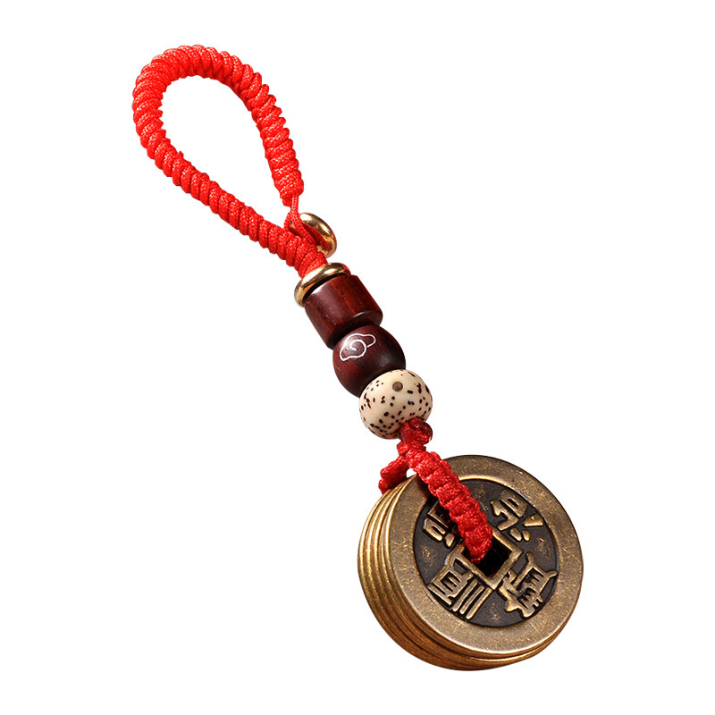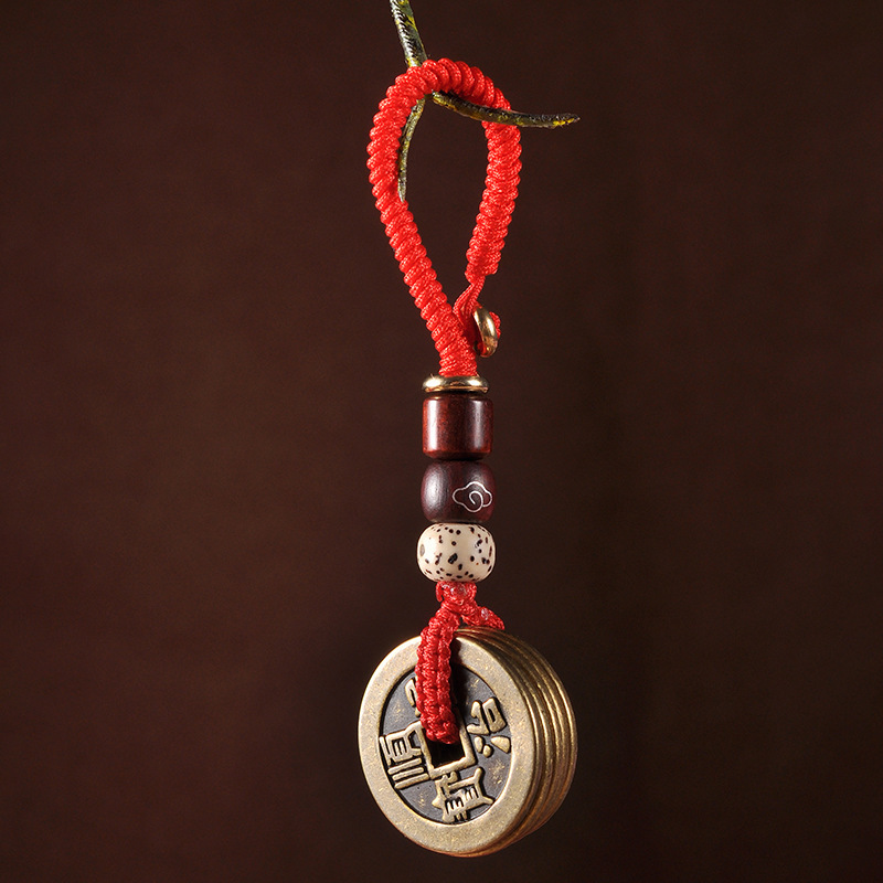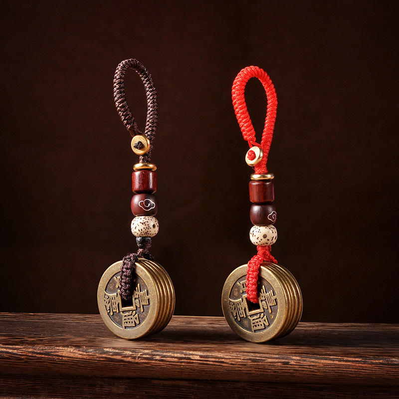 加厚五帝钱挂件随身绳钥匙扣纯铜
