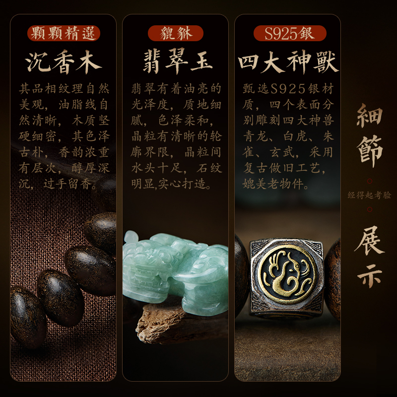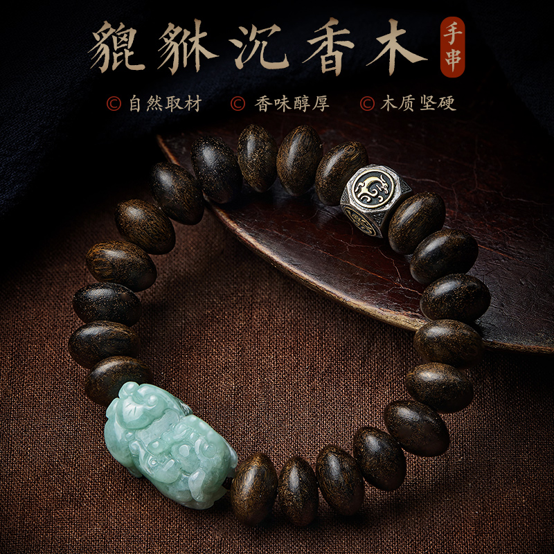 沉香木手串男翡翠貔貅手链文玩佛珠算盘珠转运珠四神兽手持念珠女