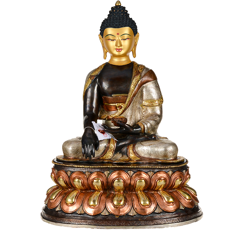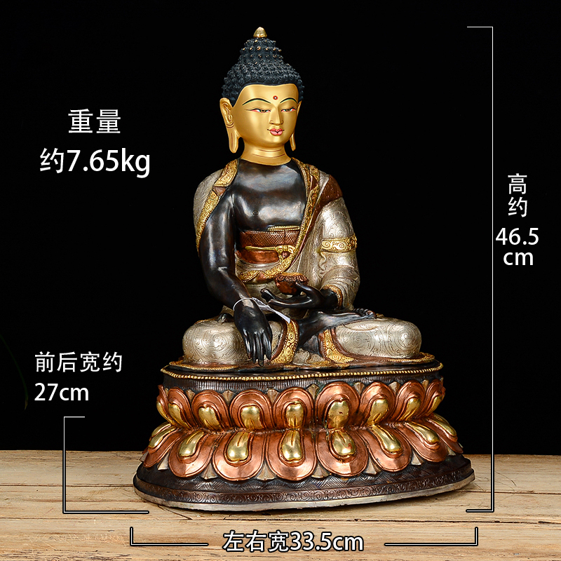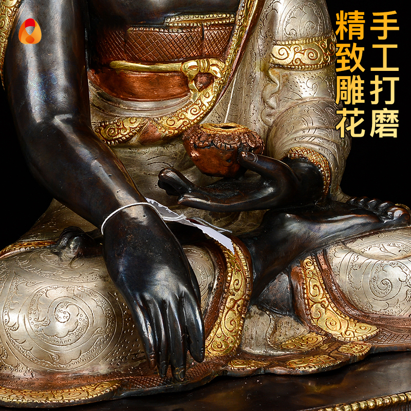 释迦摩尼铜像尼泊尔手工紫铜镀金镀银15寸释迦牟尼现代摆件