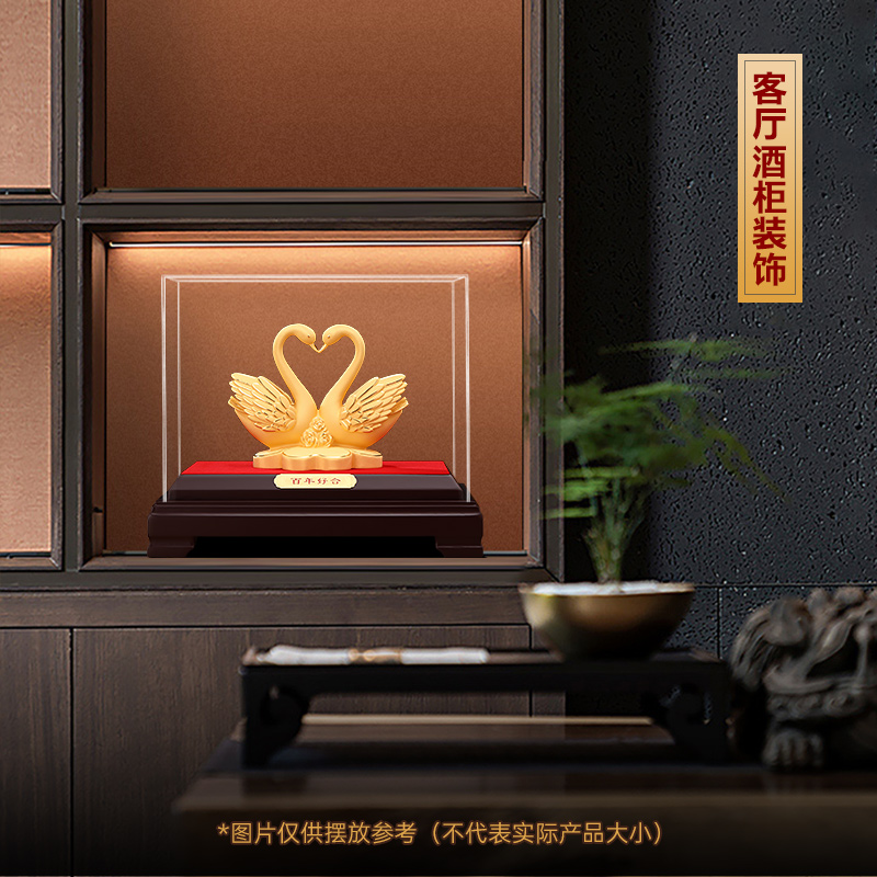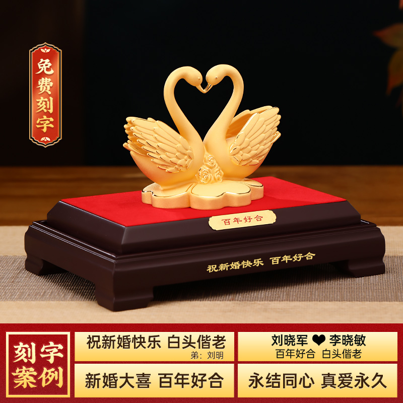 百年好合绒沙金天鹅摆件一对客厅婚房装饰品新婚结婚礼物送新人