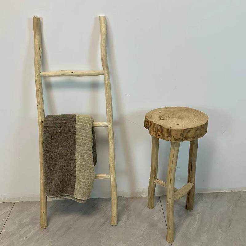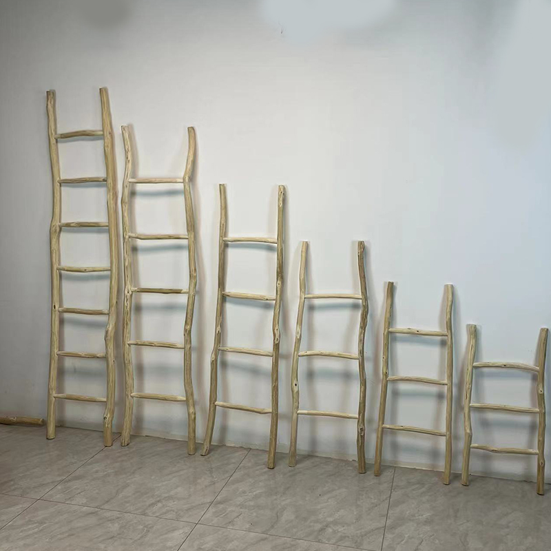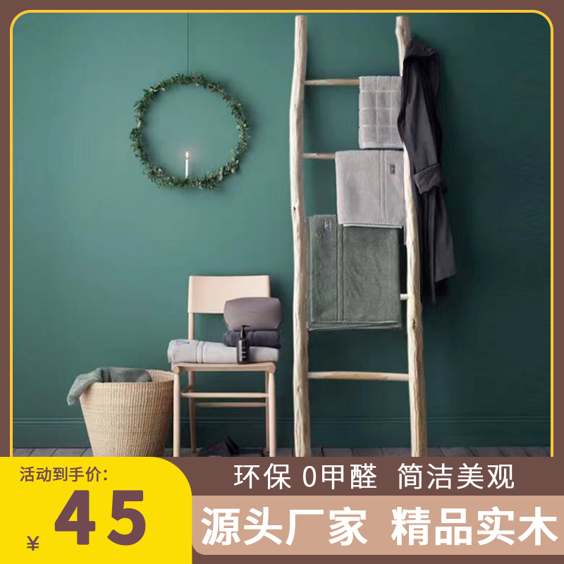 原木木梯子拍照道具装饰家v用落地实木置物架北欧毛巾架创意挂衣