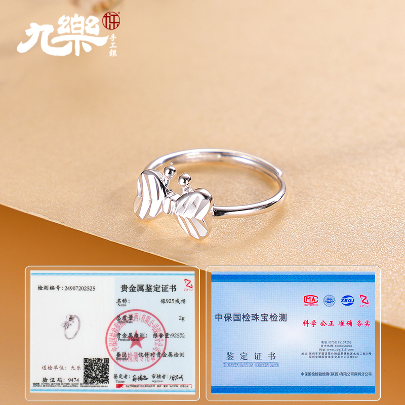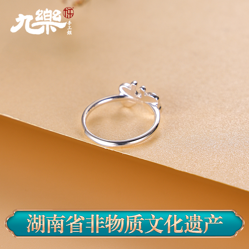 九乐S925纯银戒指女蝴蝶结光面开口可调节甜美时尚银指环送女友礼