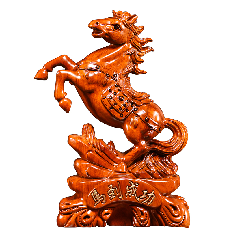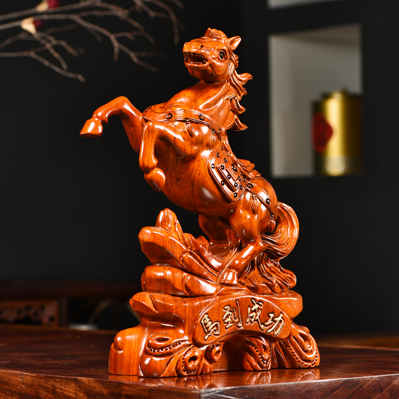 花梨木雕马到成功摆件实木十二生肖家居办公书房装饰开业工艺礼品
