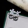 s925纯银戒指环 银饰双珠可调节珍珠戒指托DIY手工制作银配件空托