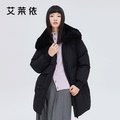 【奥莱专享价】艾莱依羽绒服仿羊羔毛领设计感长款加厚过膝外套冬