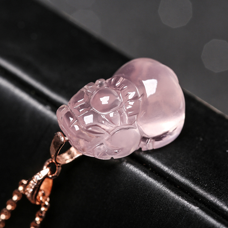 貔貅吊坠天然粉水晶芙蓉石玫瑰金925银锁骨项链女招桃花财运转运