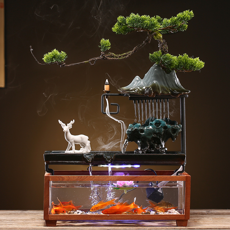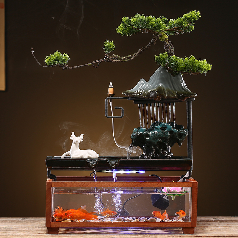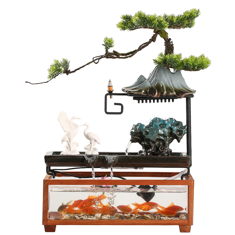 创意循环流水小型鱼缸招财装饰品摆件客厅玄关办公室桌面开业礼品