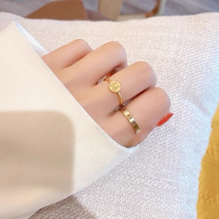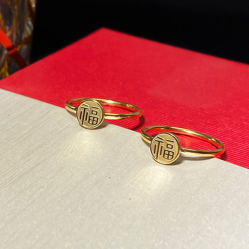 大号戒指女大码装饰指环福字磨砂金色粗手食指中指胖妹m