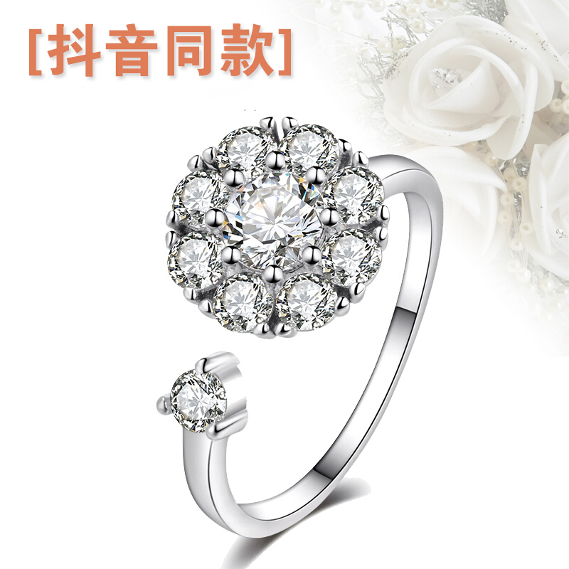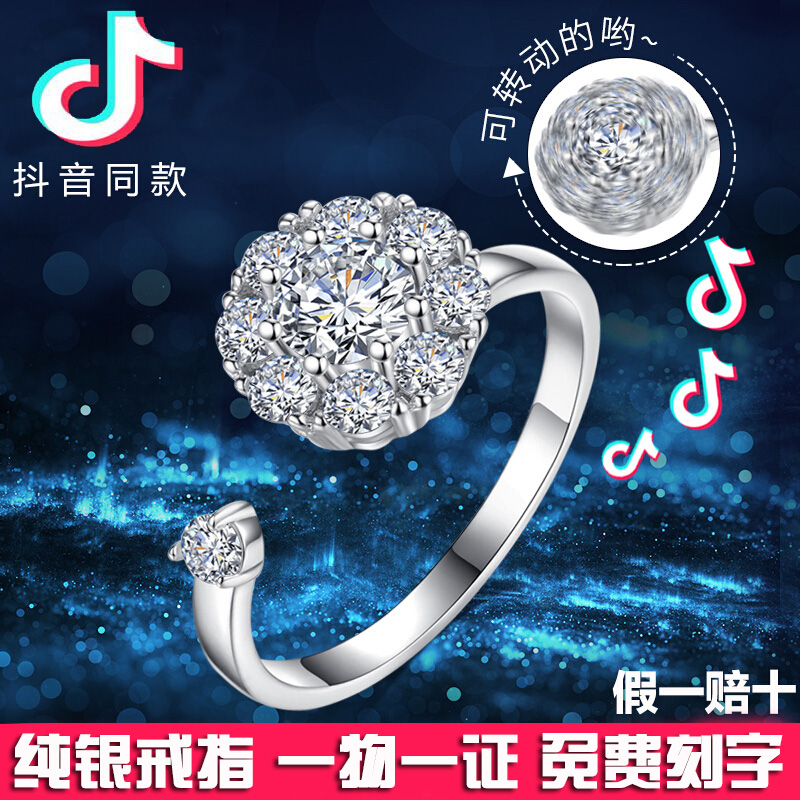 S925纯银抖音余潇潇同款时来运转莲花旋转网红潮人开口戒指可转动