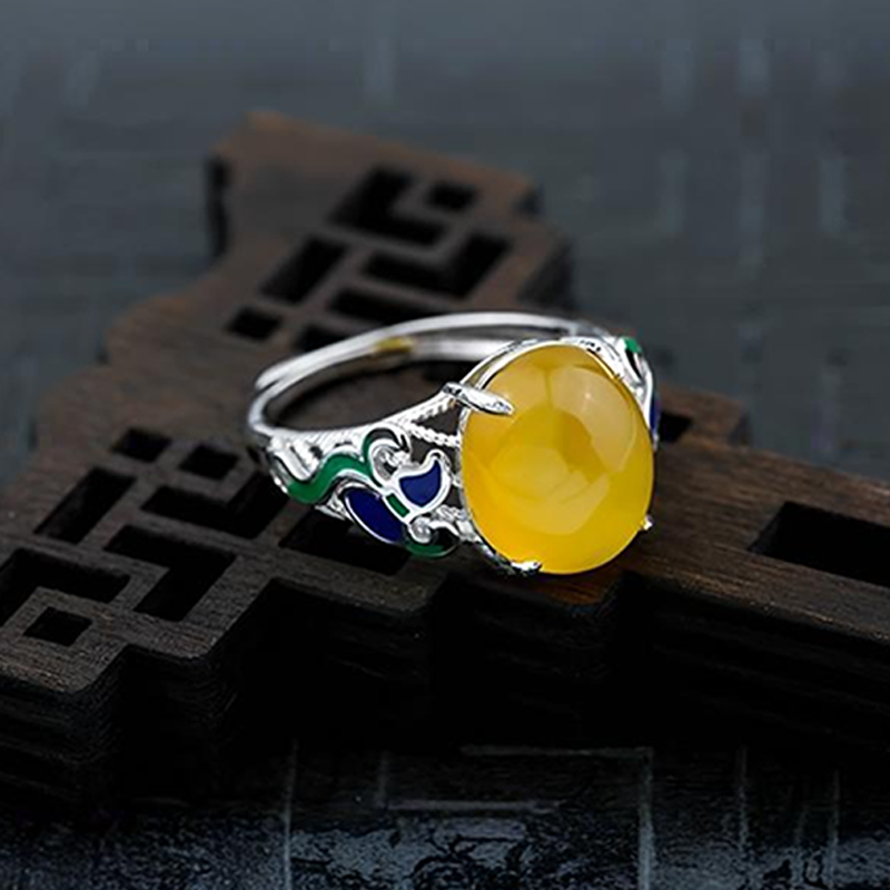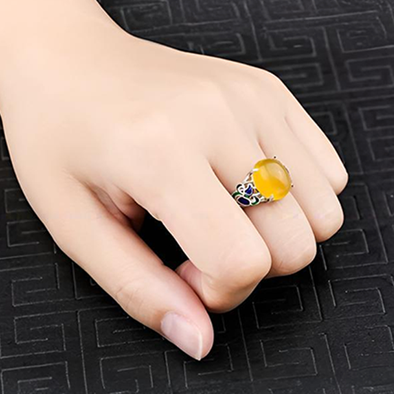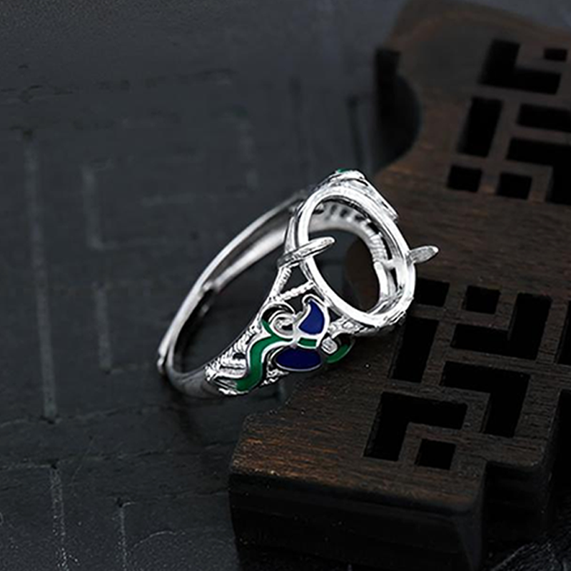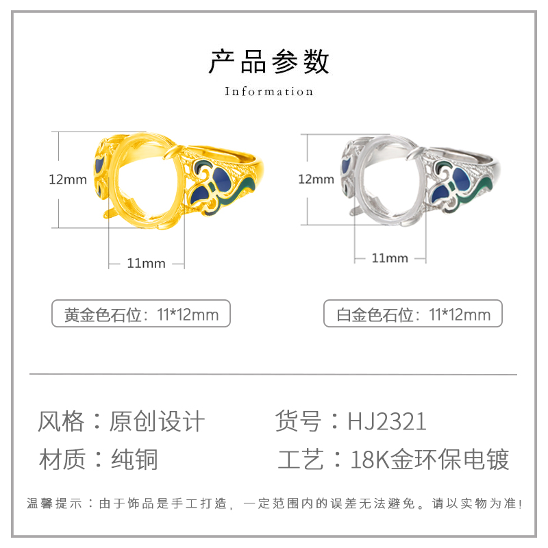 如意葫芦景泰蓝戒指空男女镶嵌蜜蜡绿松石戒指托空托配件11*12mm