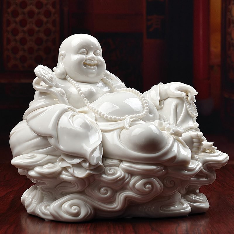 东方泥土《祥云笑佛》德化白瓷弥勒佛雕塑艺术工艺品中式家居摆件