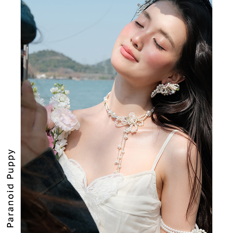 PP饰品《蕊》法式珍珠花朵流苏婚礼项链女小众轻奢气质锁骨choker