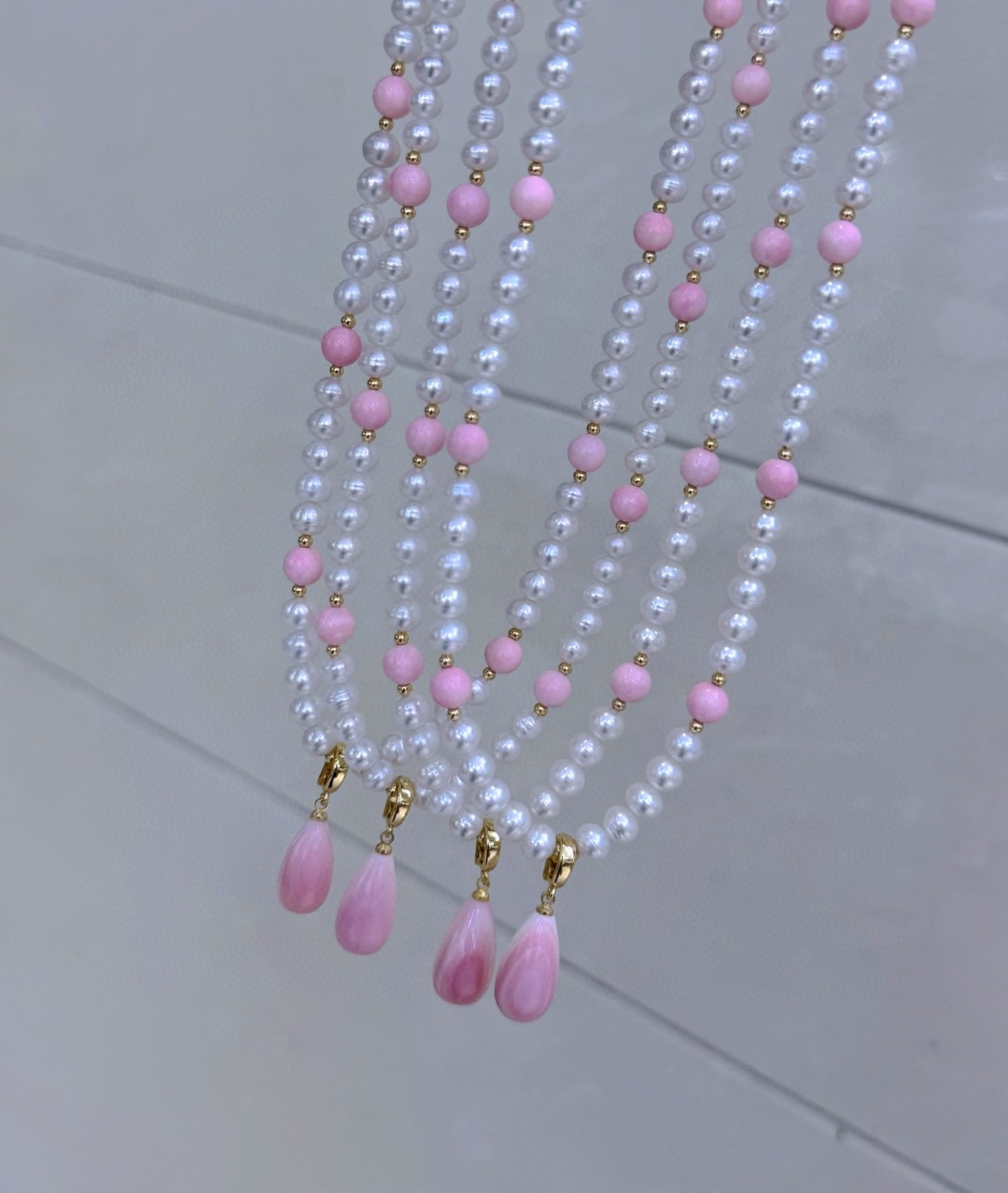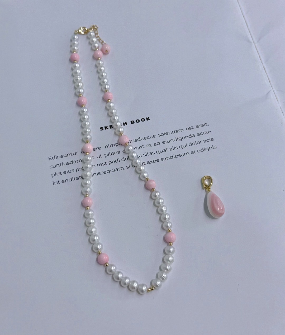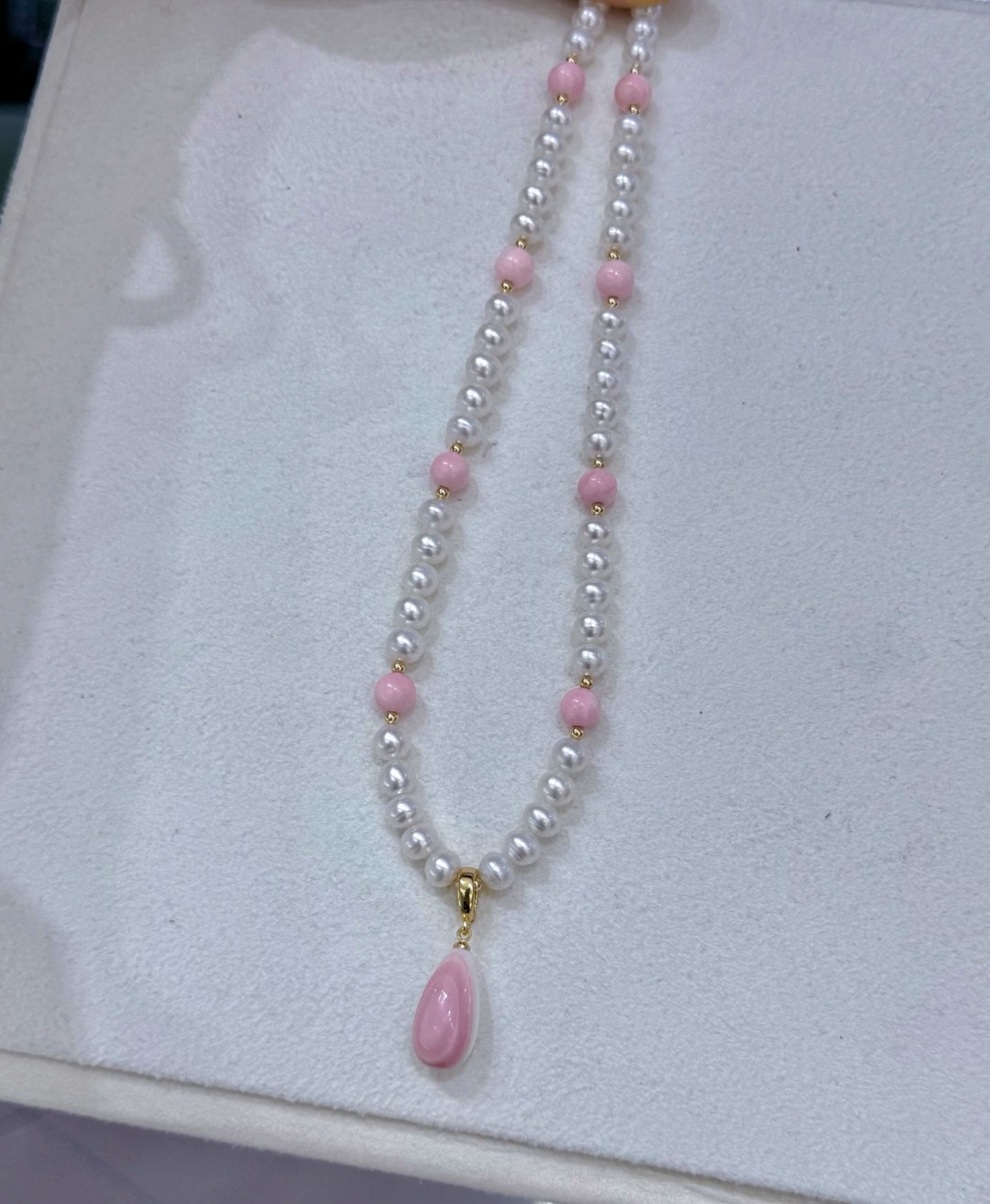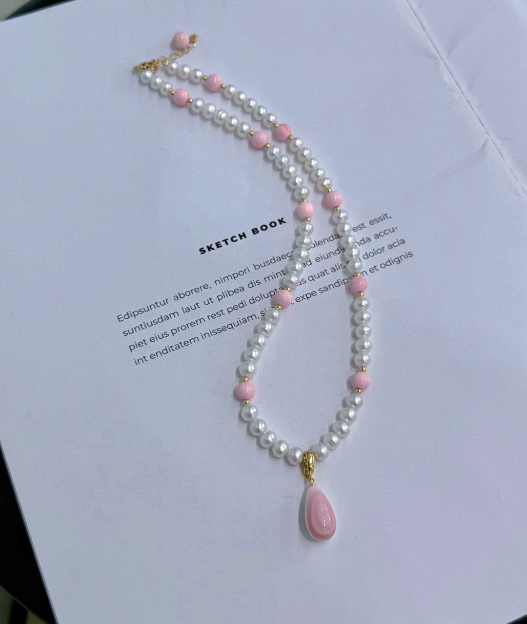天然女王贝粉嘟嘟的水滴吊坠万能扣设计珍珠锁骨链,附权威证书