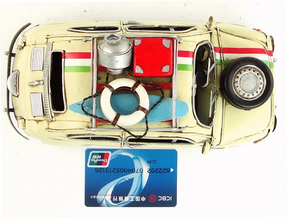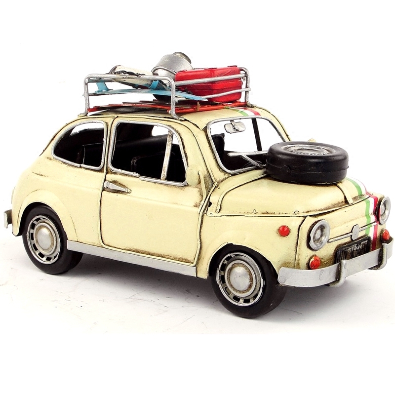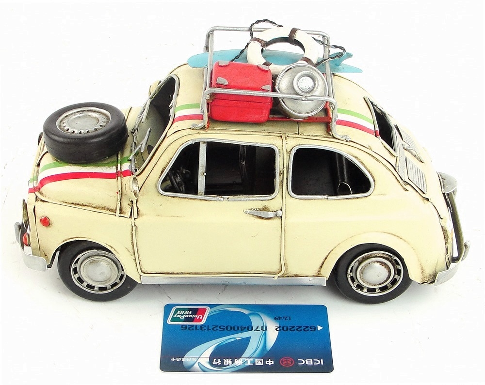 复古铁艺老爷车模型1965年菲亚特500旅行汽车摆件铁艺工艺品礼物