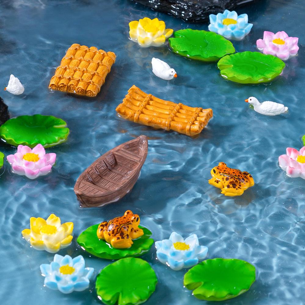 微景观创意水族鱼缸漂浮木船荷花李白多肉盆景装饰材料造景小摆件