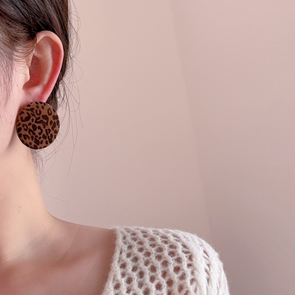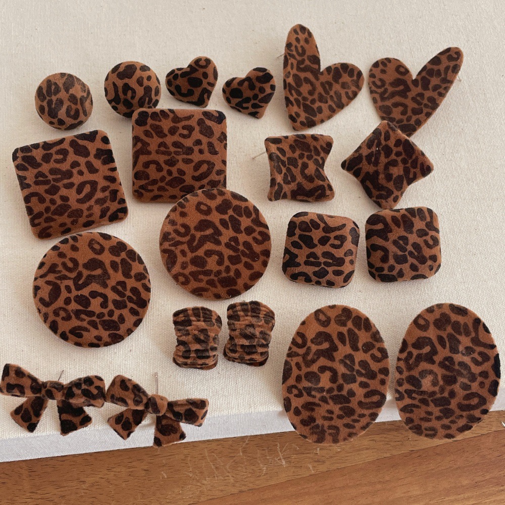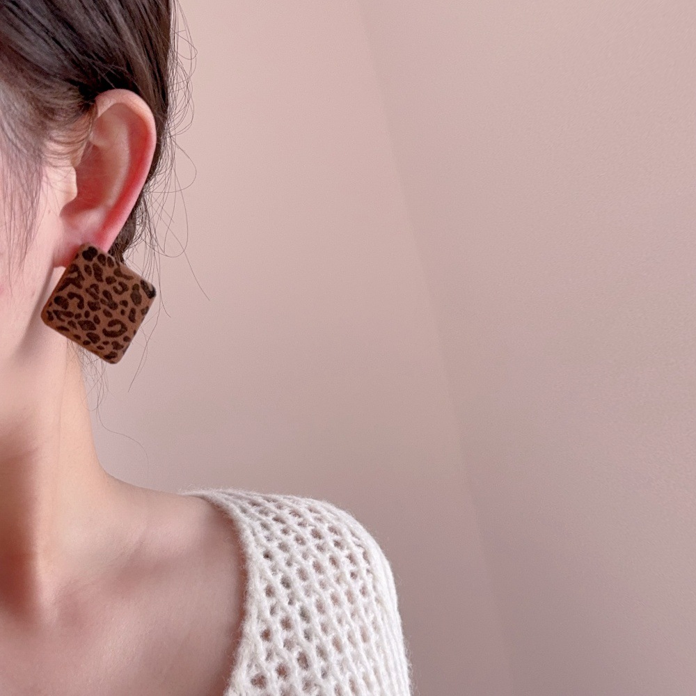 秋冬复古美拉德豹纹植绒夸张圆形耳钉高级感时尚方形爱心耳环耳饰