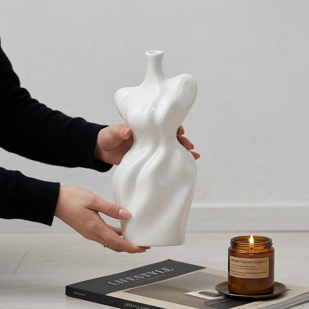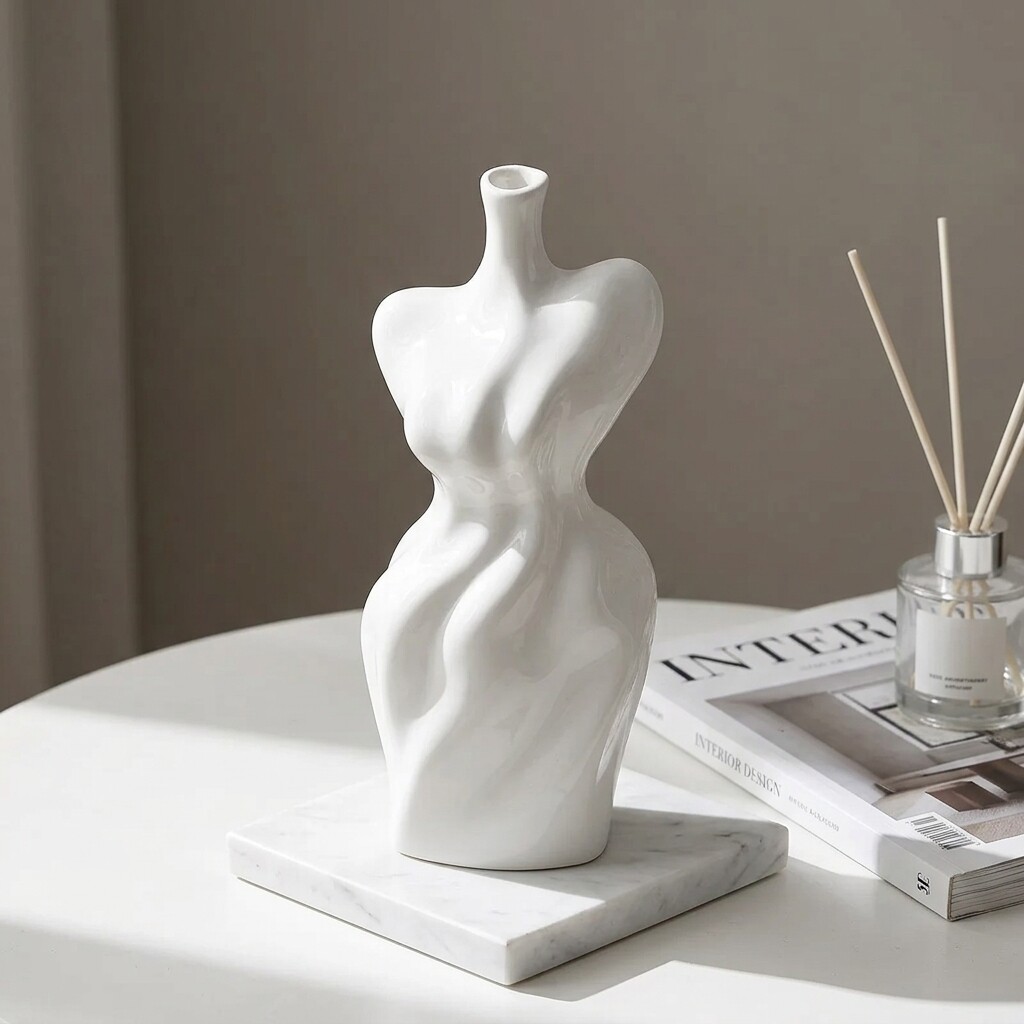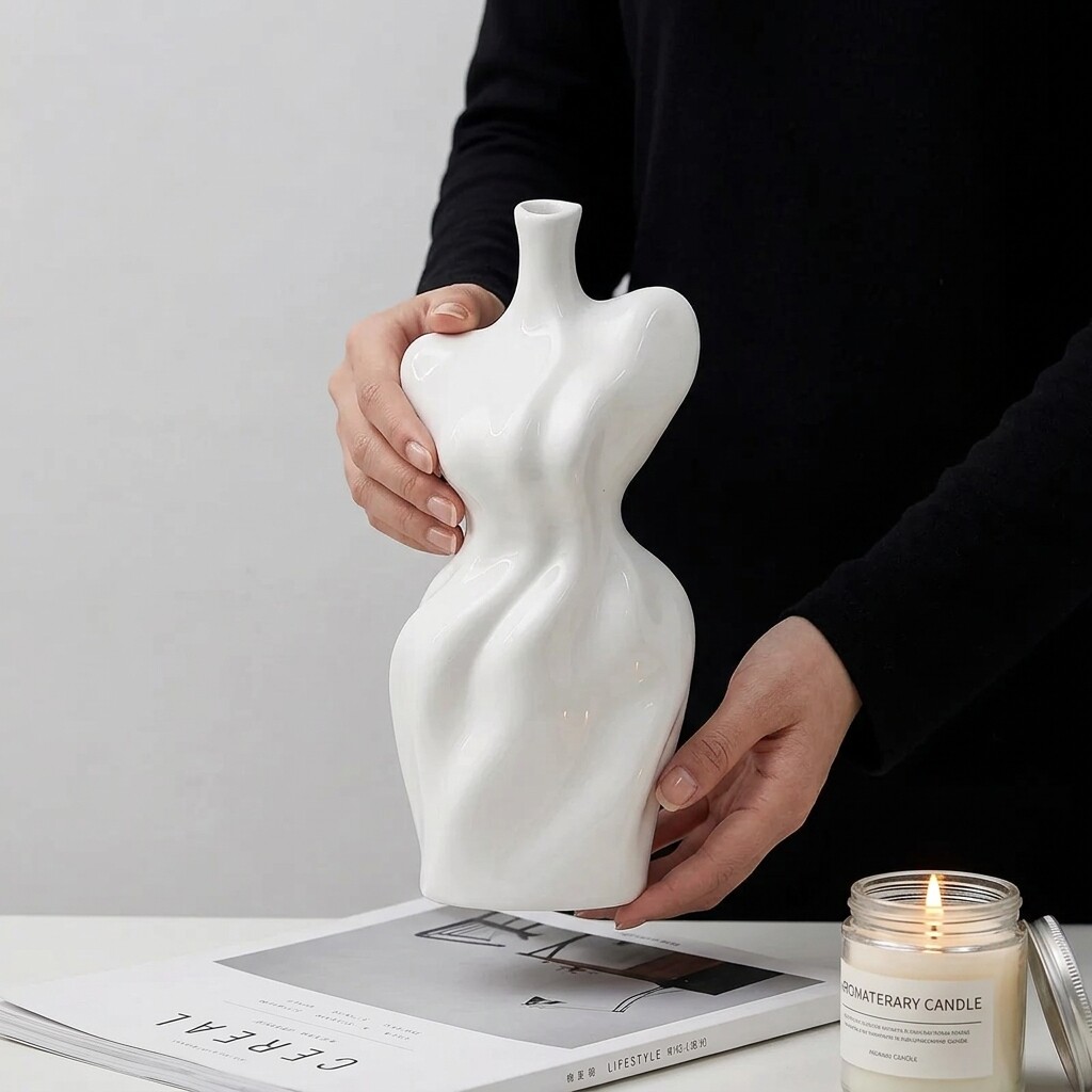 创意人体造型陶瓷花瓶白色家居装饰摆件大气艺术品