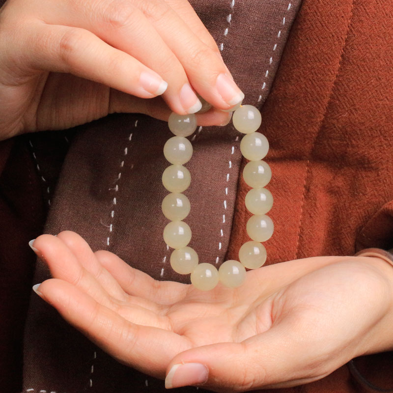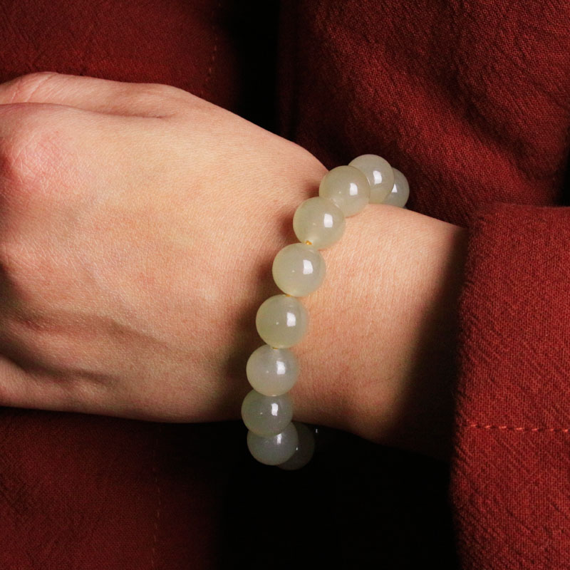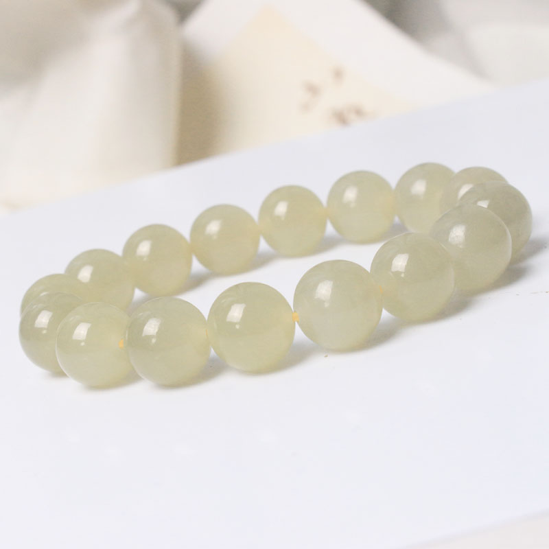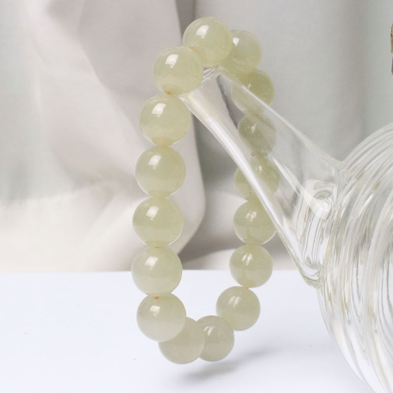 天然和田玉手串男女同款12mm蜂蜜水圆珠手串高油高冰玉石手饰