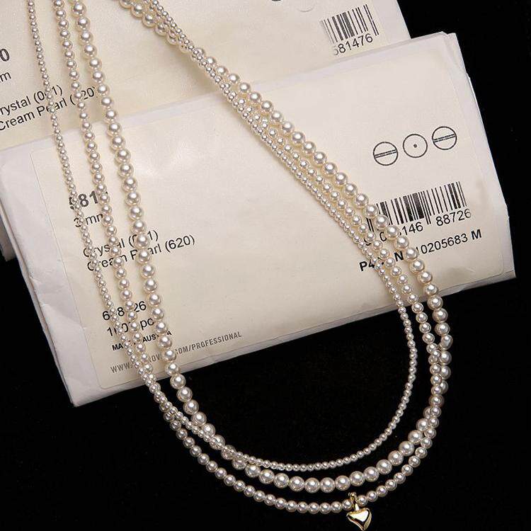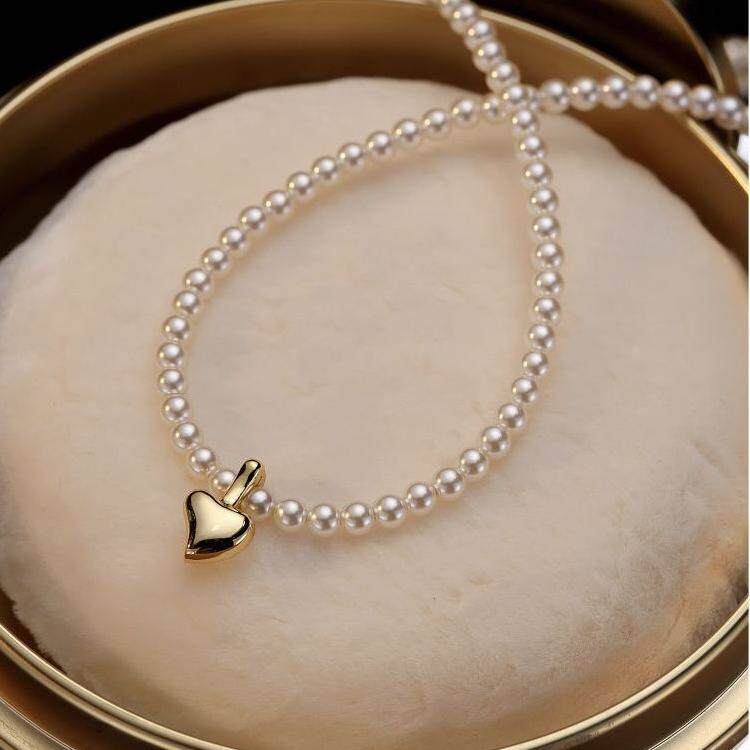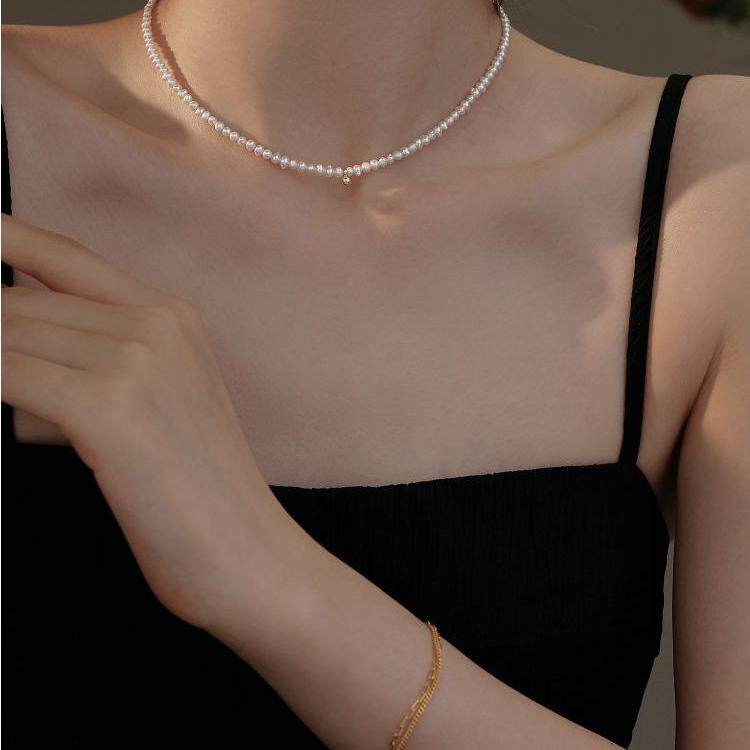3mm施家小米珠珍珠项链女颈链爱心锁骨链小珍珠项链2024新款爆款