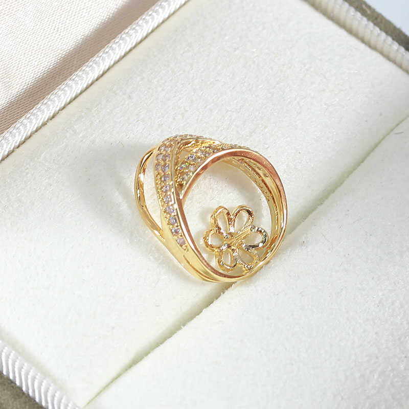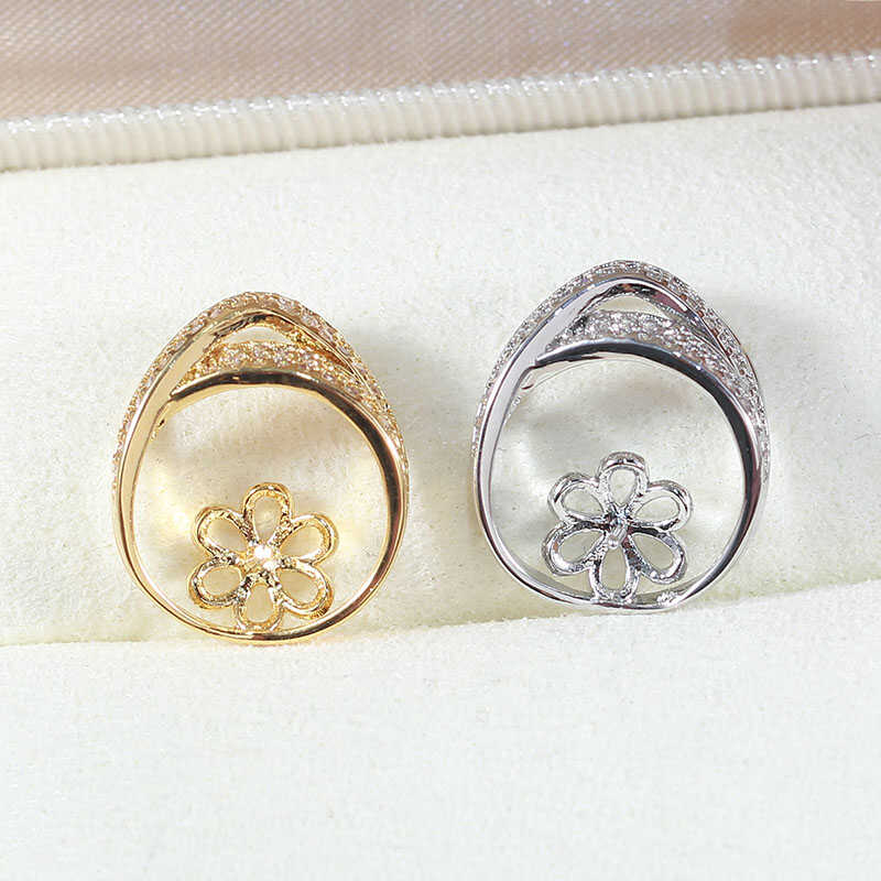 DIY珍珠配件新款铜镀金镂空圆环镶钻轻奢吊坠空托时尚精致经典