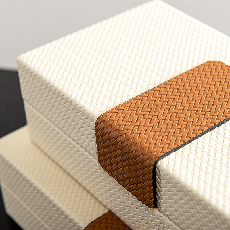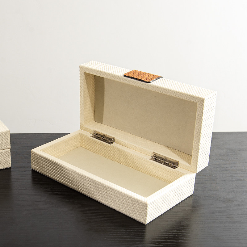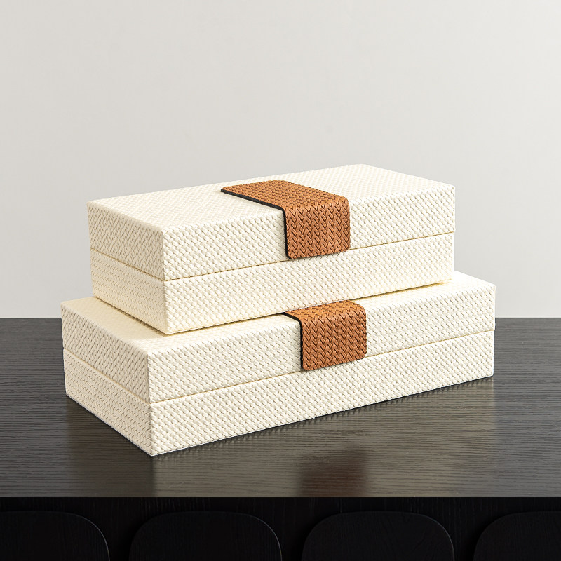 意式皮革收纳盒摆件创意编织纹米色装饰盒样板间高档首饰盒装饰品
