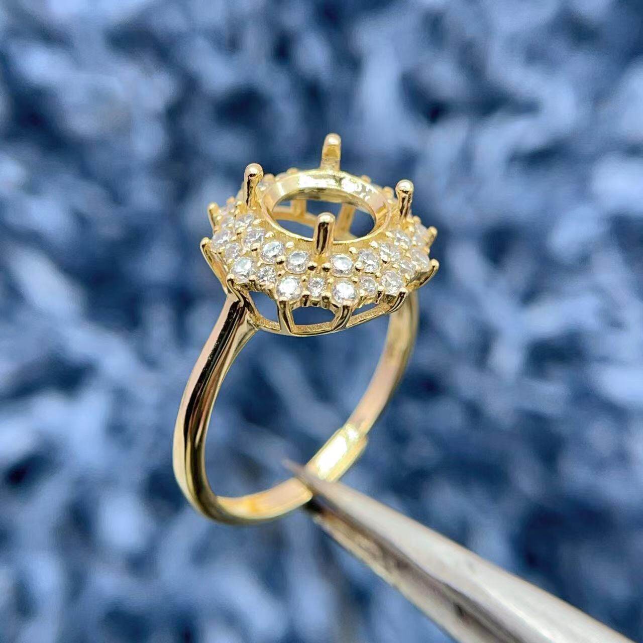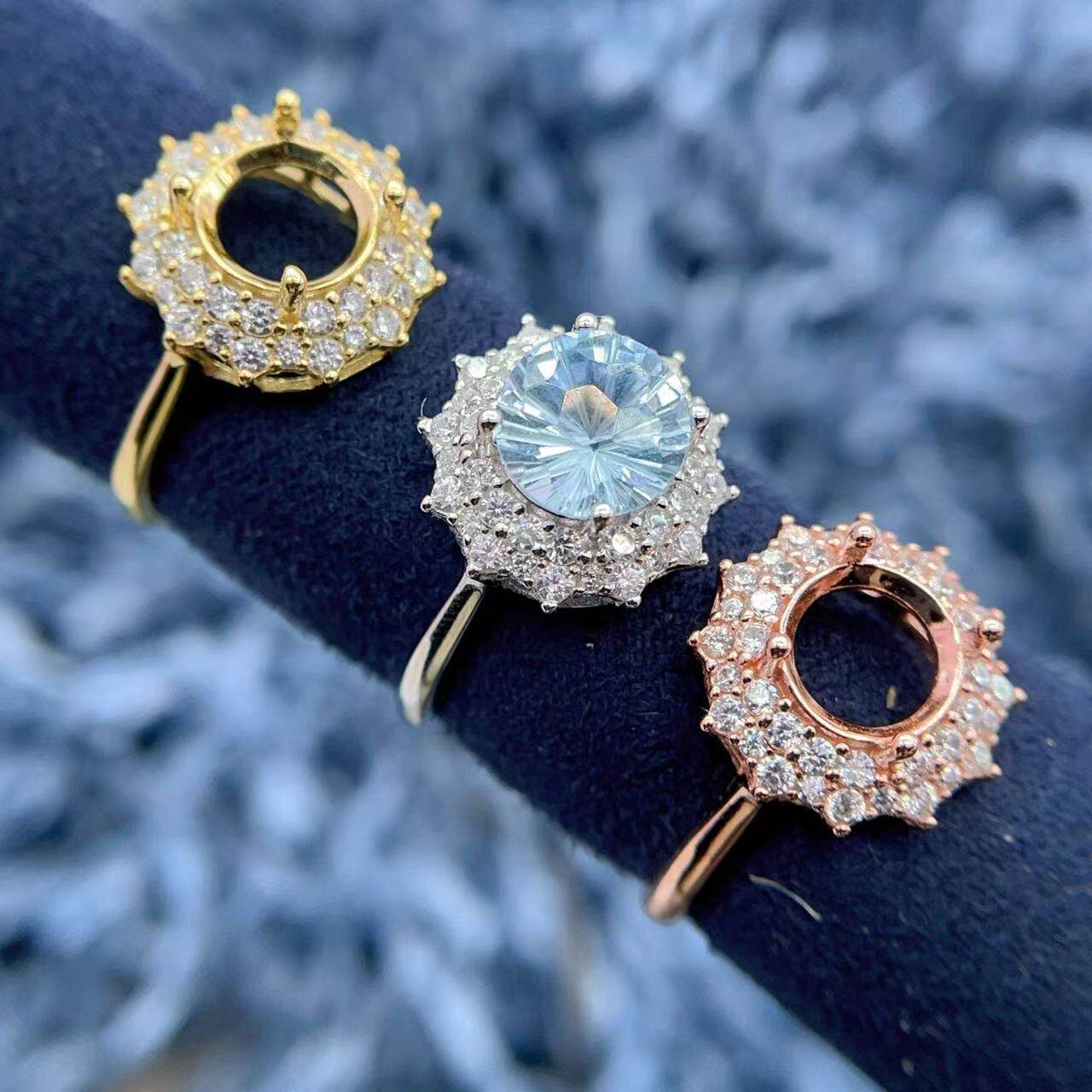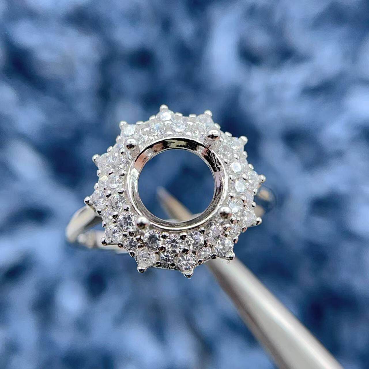 S925纯银戒指空托圆形8*8mm轻奢烟花款水晶宝石银饰品戒托银镀18k