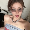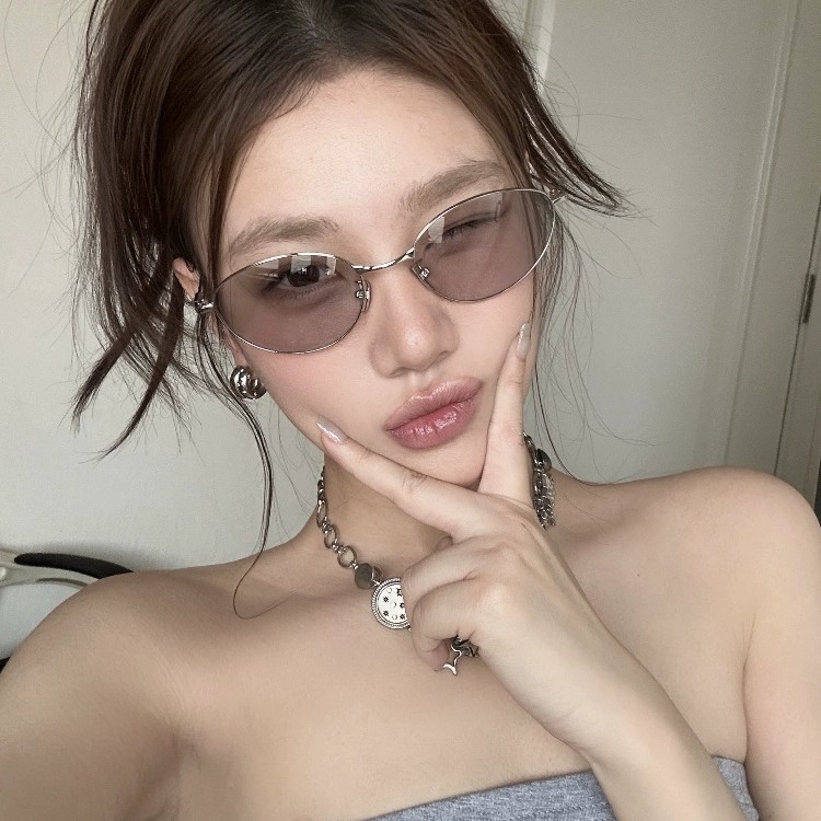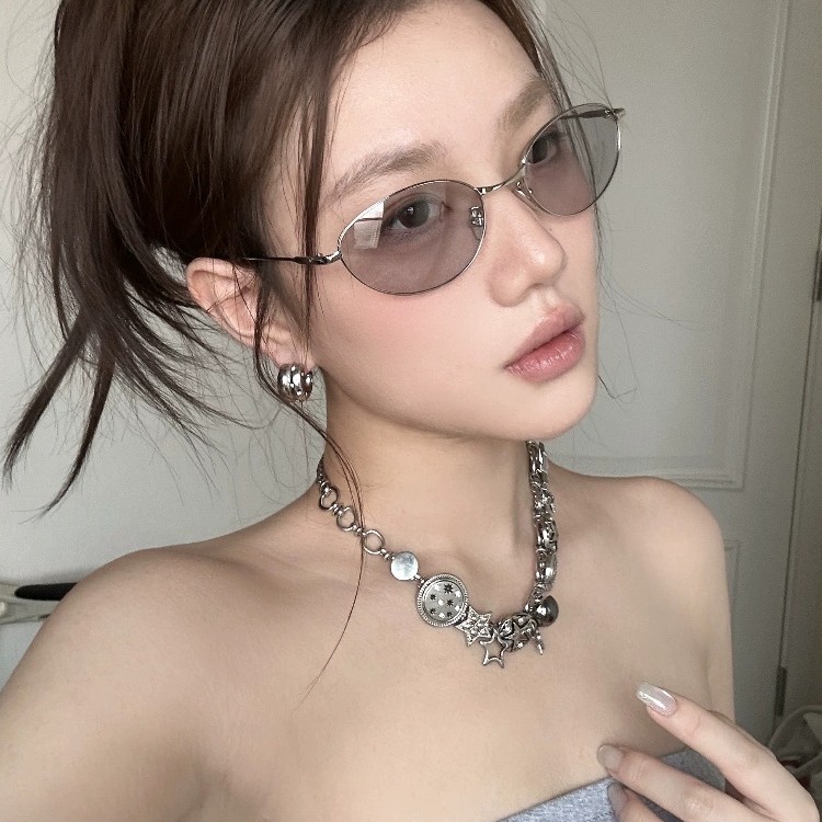 复古欧美金属老钱风墨镜女透明灰色高级感方圆脸显瘦猫眼太阳镜潮
