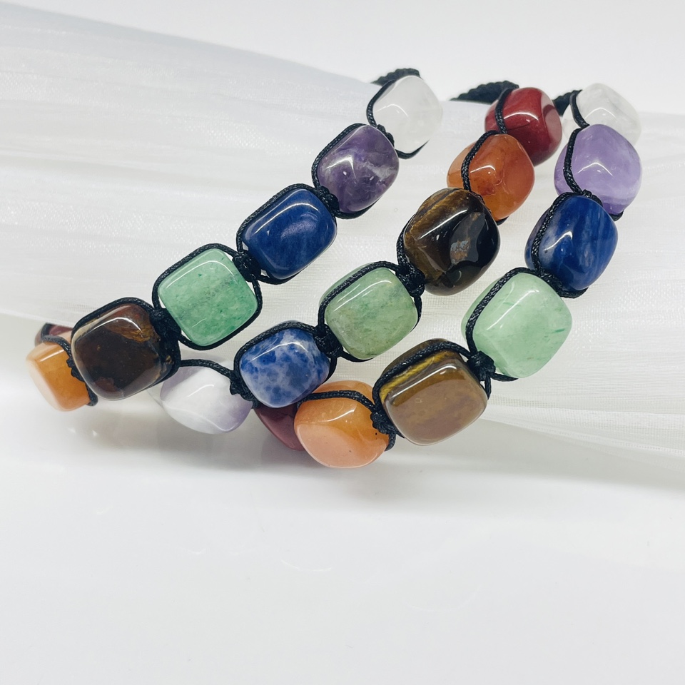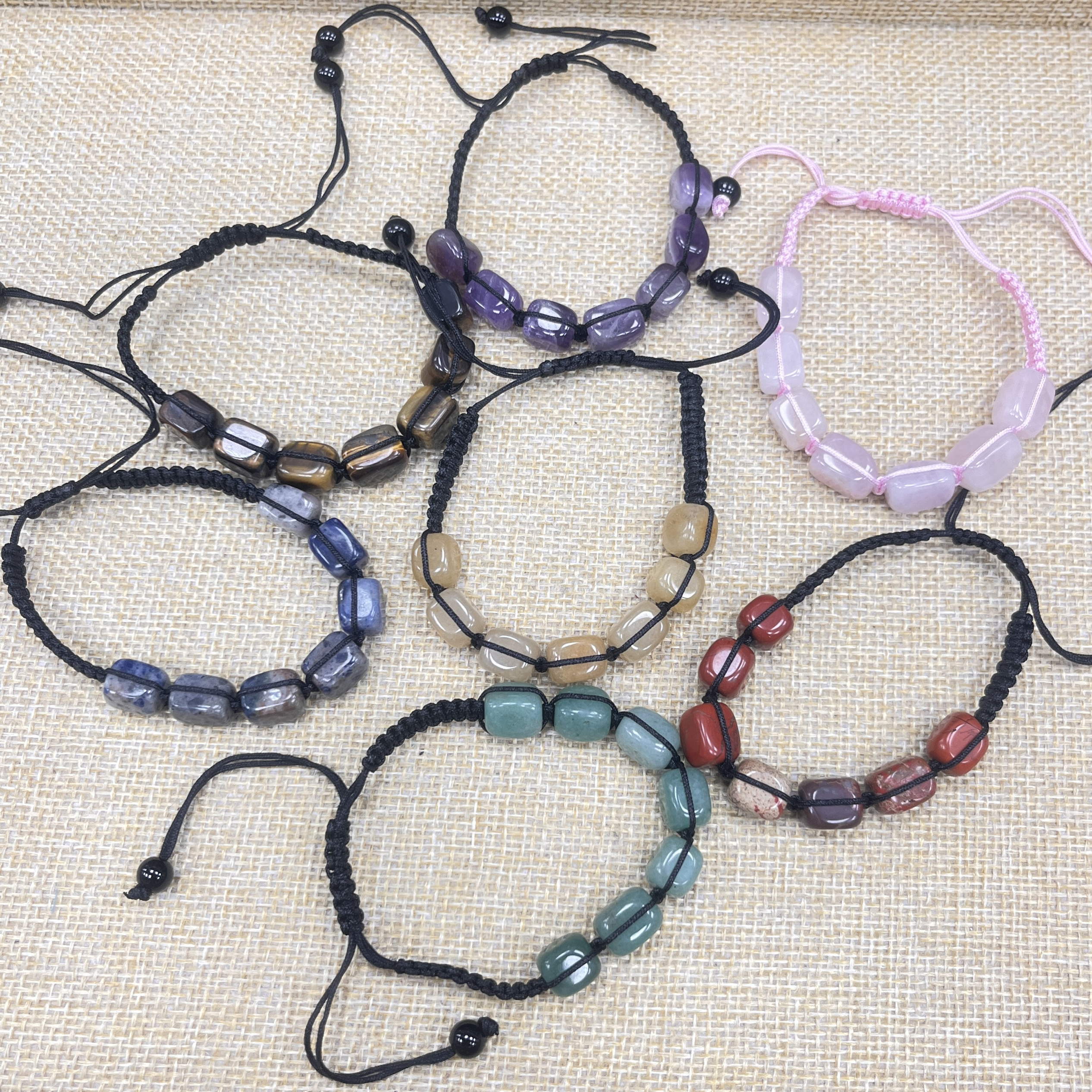 七彩不定型玉石手链天然矿物质七色原石编织手链异国民族风情时尚