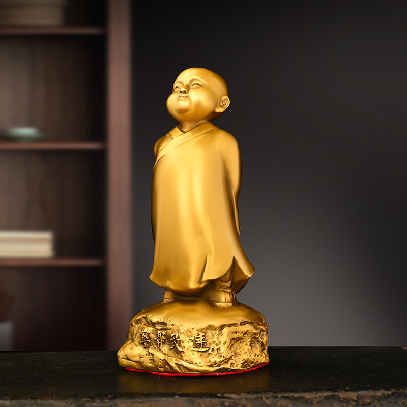 全铜宁静致远摆件家居办公室桌面小号装饰品负手而立小和尚铜佛像