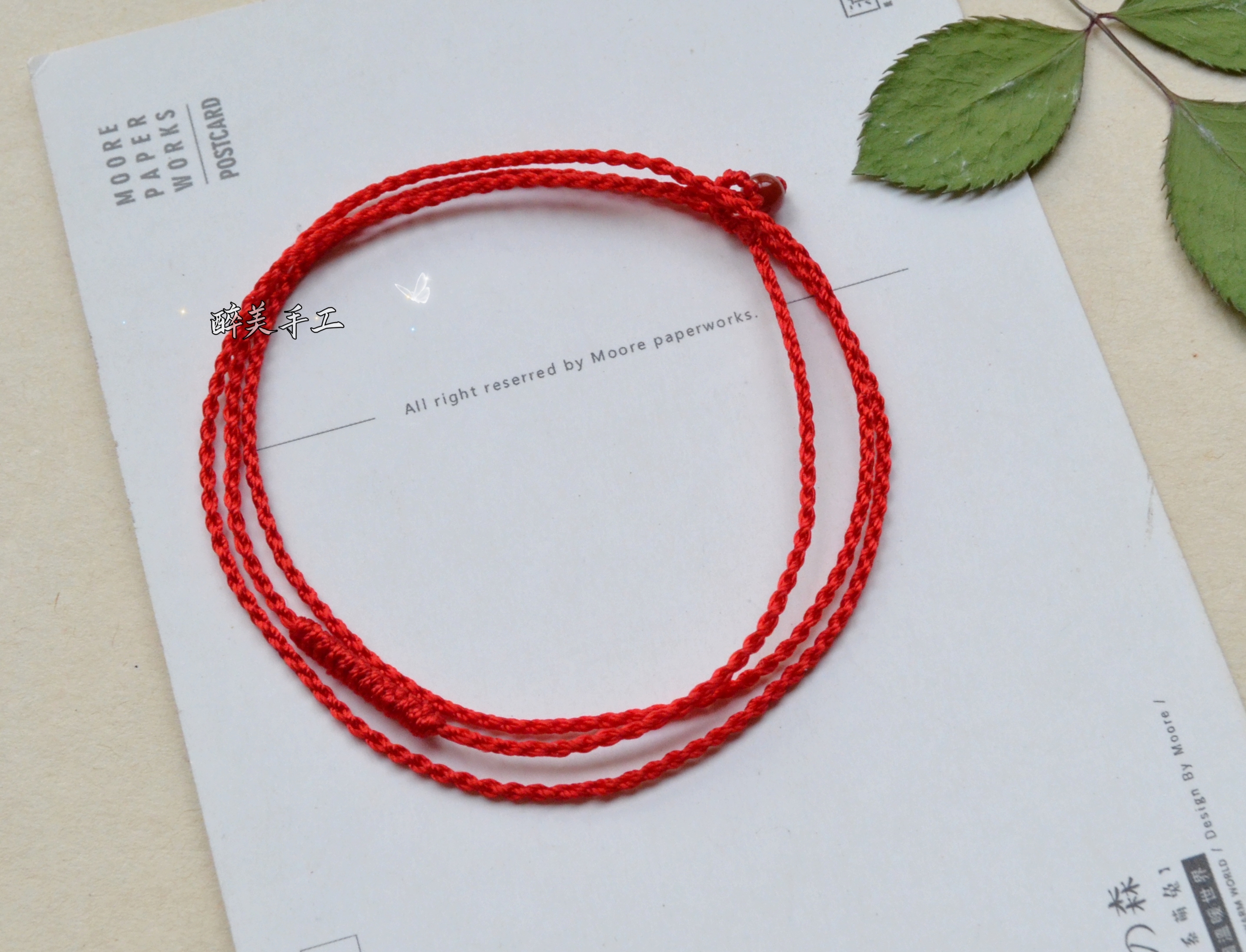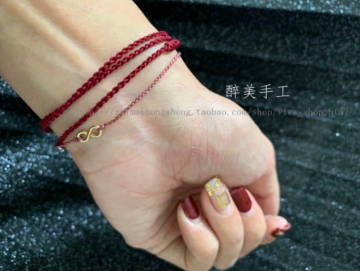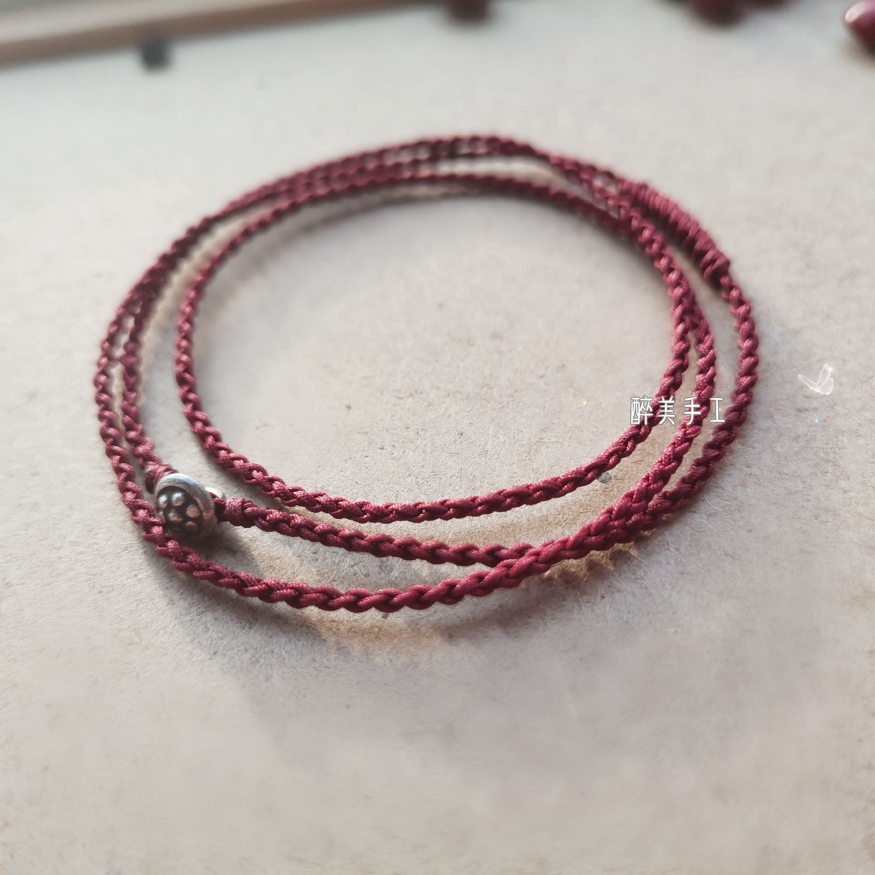 原创新款设计手工编制民族风金刚结深红色三圈手绳情侣款