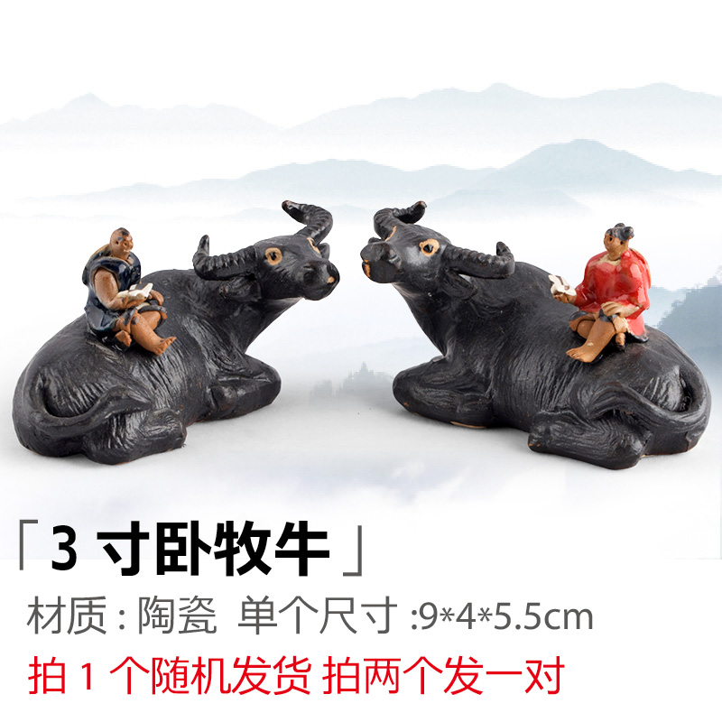 中国风摆件牧牛陶瓷吸水石上水石盆栽装饰家居饰品动物仿真微景观