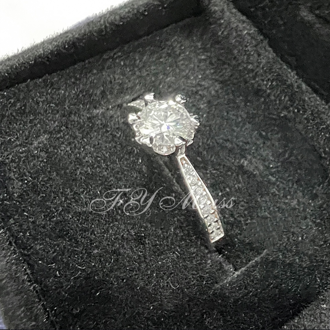 莫桑纯银1克拉莫桑石直臂雪花戒指女款开口戒时尚气质首饰