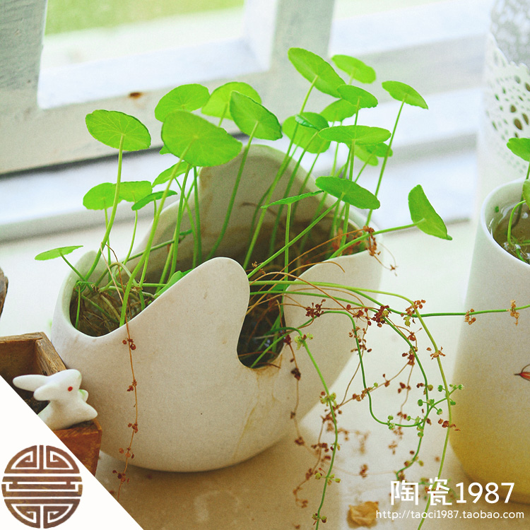 简约创意另类蛋壳形陶瓷花盆 花器家居摆件桌面装饰品套装 工艺品
