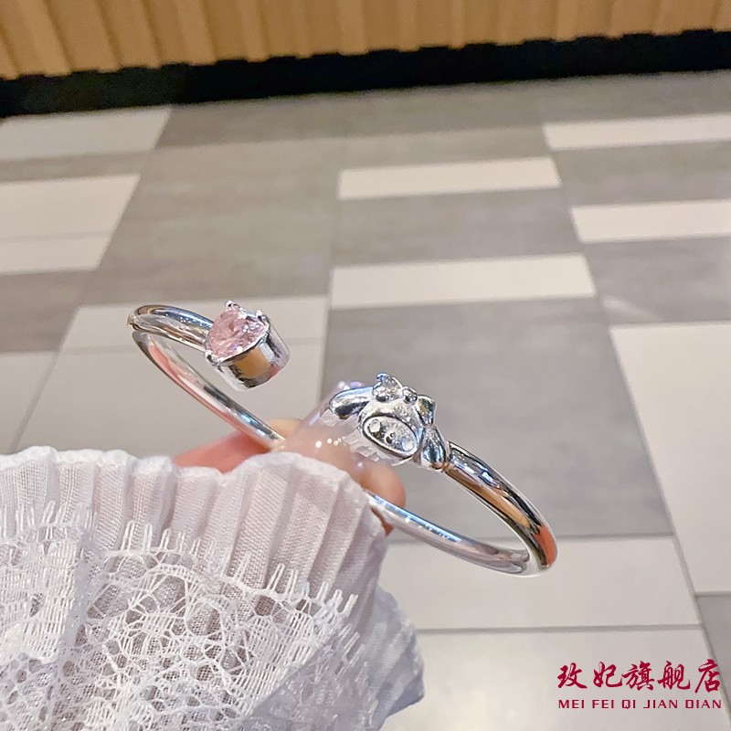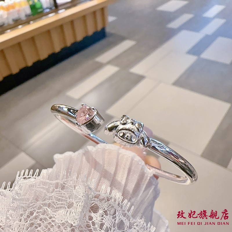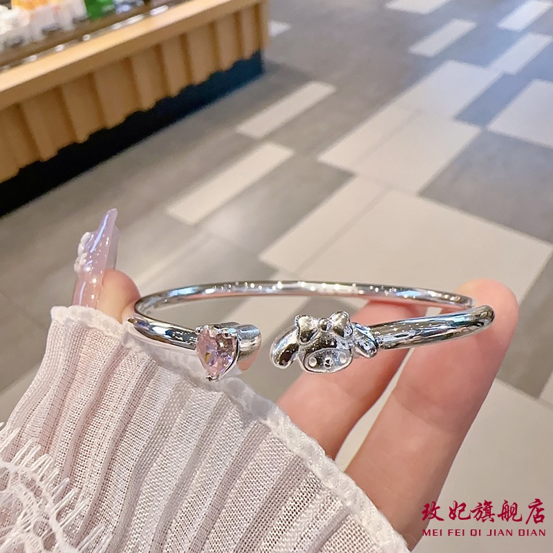 玫妃美乐蒂爱心开口实心纯银手镯足银9999女中大童学生儿童礼物