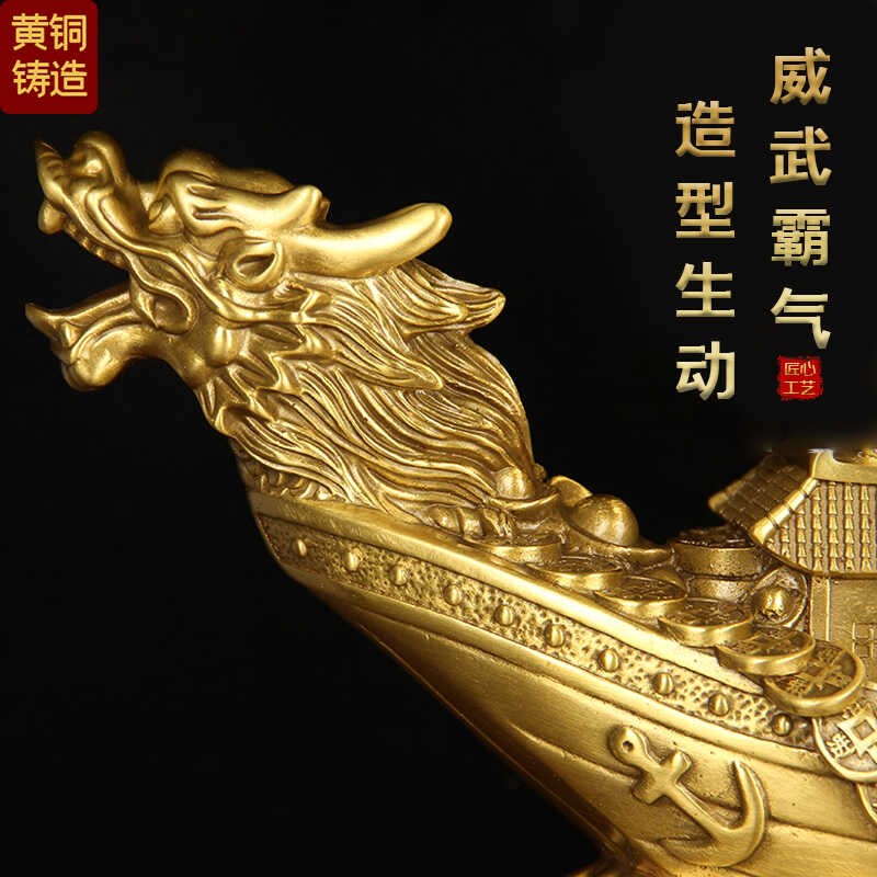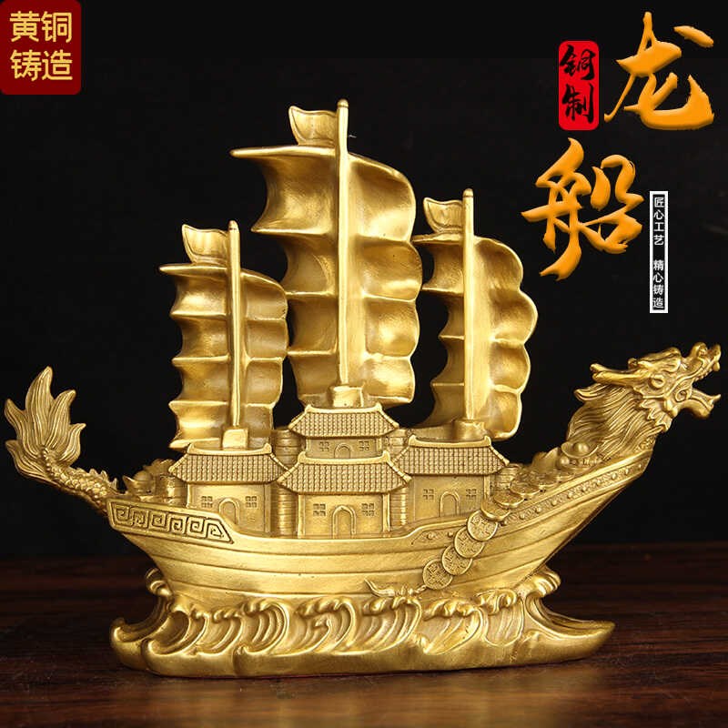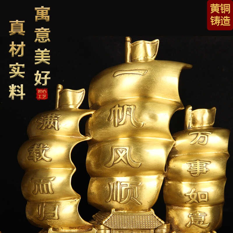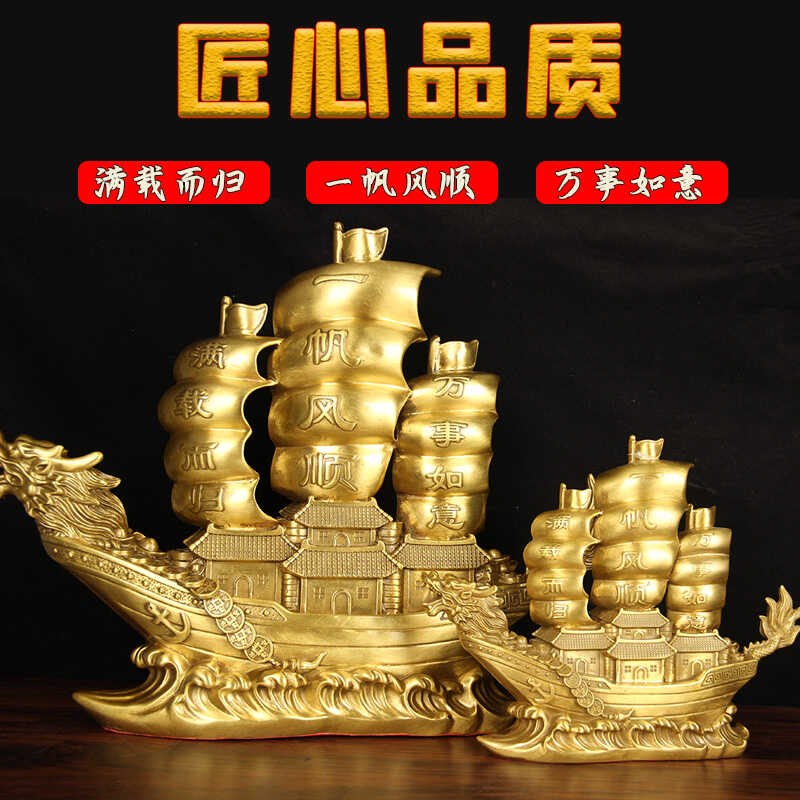 龙船摆件纯黄铜一帆风顺帆船客厅办公室桌面装饰满V载而归大号龙