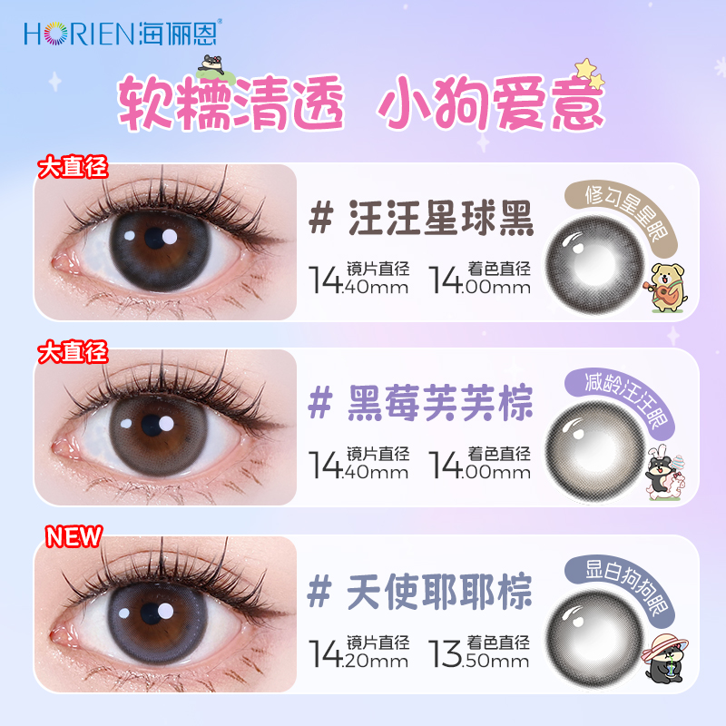 【加购 6件赠60片】海俪恩小狗美瞳日抛60片棕色自然混血大小直径