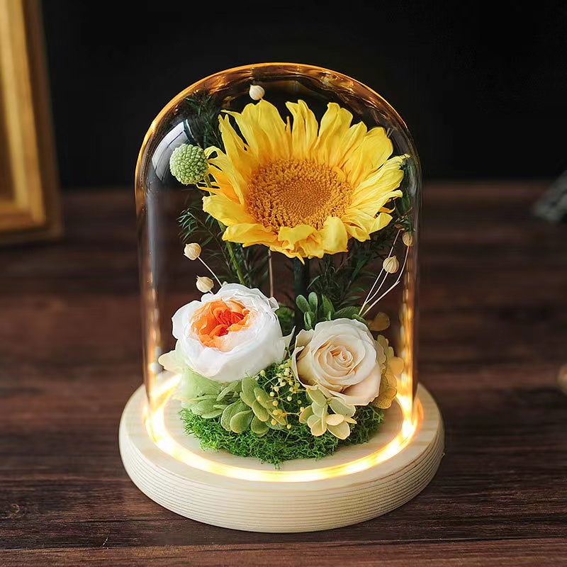 永生真花向日葵玻璃罩创意家居摆件送女朋友生日礼物闺蜜母亲节新