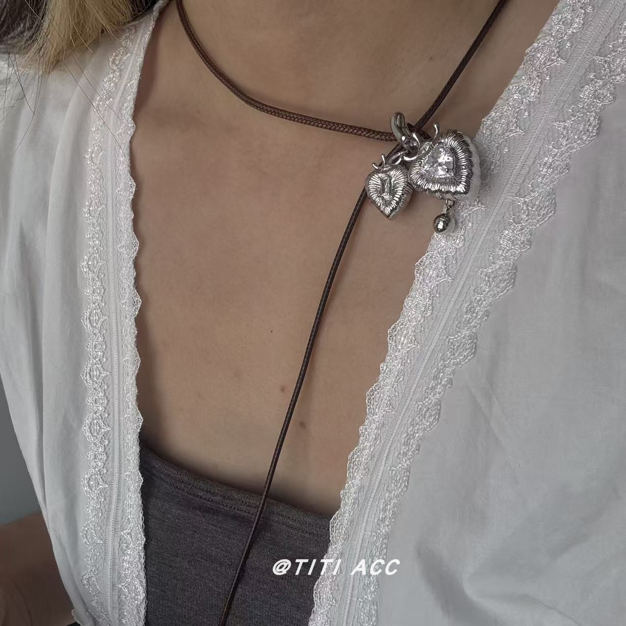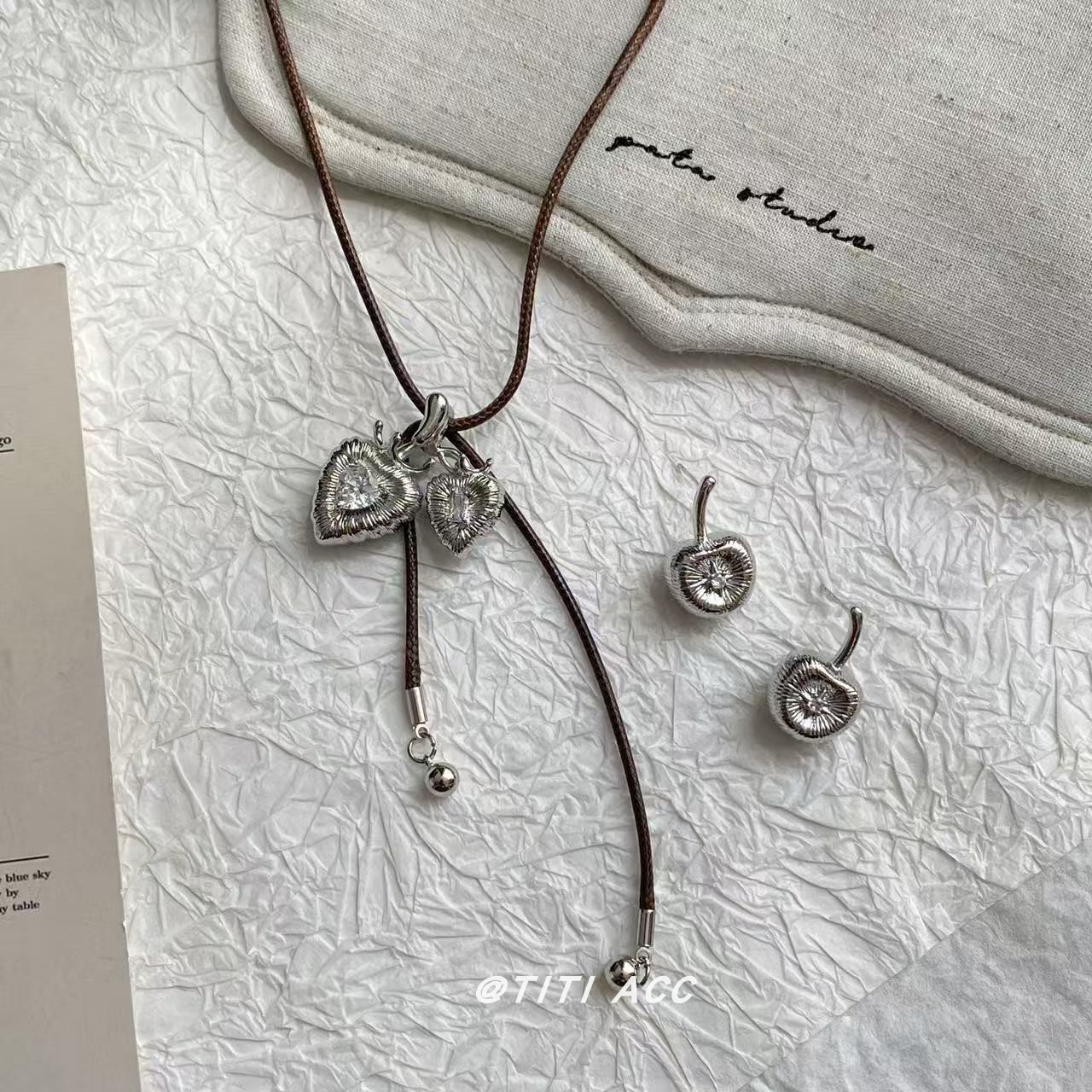 甜酷辣妹爱心草莓锆石可抽拉项链小众简约樱桃耳钉韩版长款毛衣链