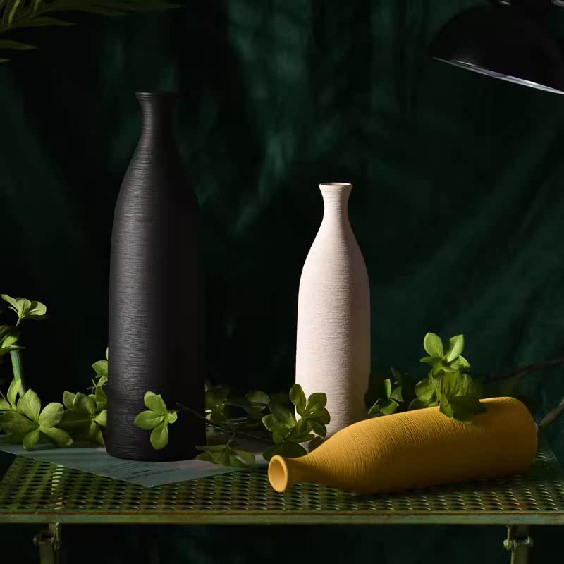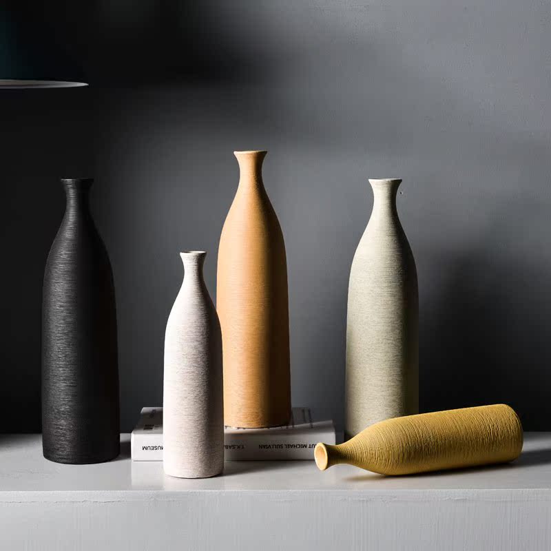 拉丝北欧陶瓷花瓶摆件客厅插花单支黄色干花装饰品小口径瓶子花器