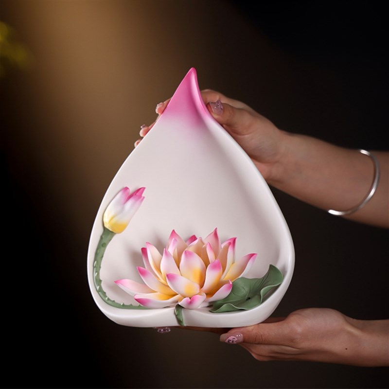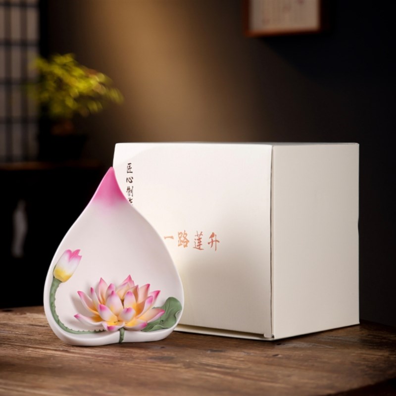 一路连升陶瓷莲花摆件手工瓷花中式客厅玄关佛前装饰工艺品礼品