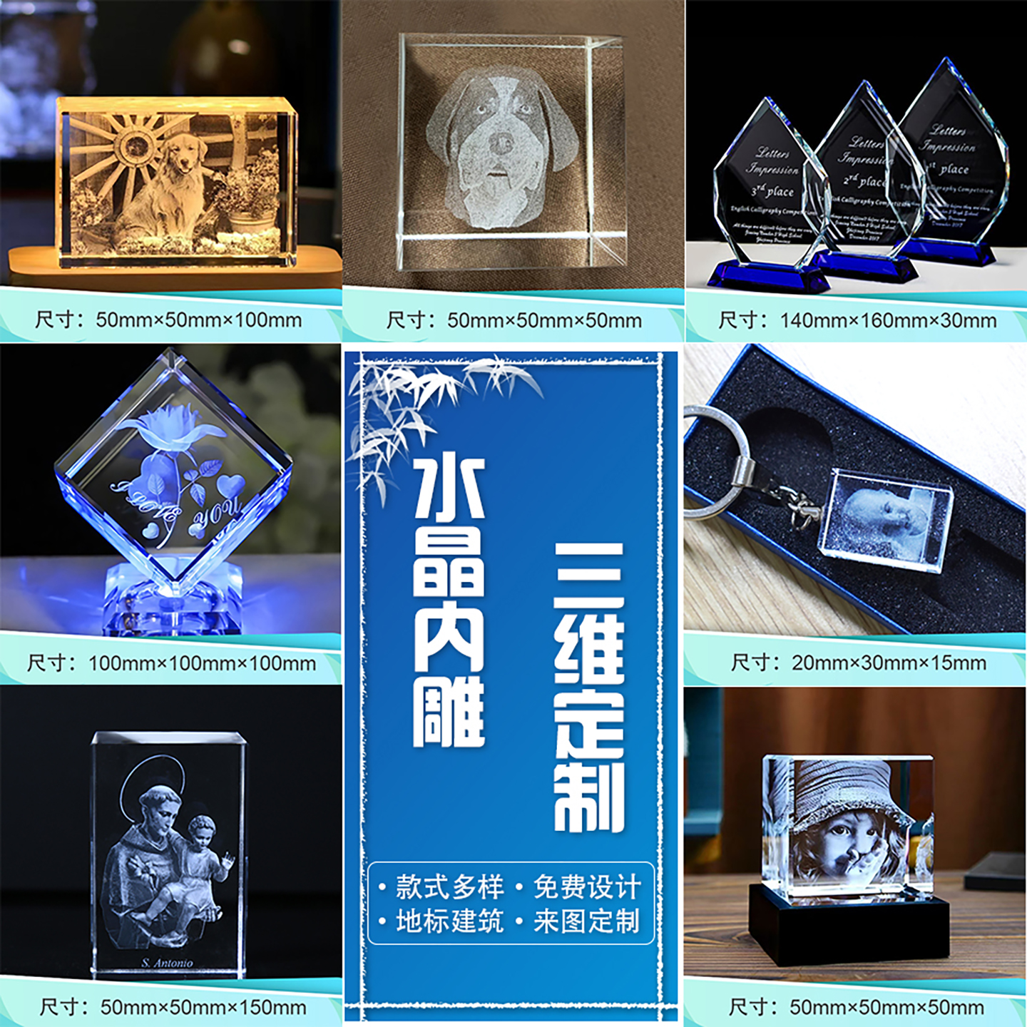 水晶激光内雕定制摆件3d打印水晶球摆台纪念品伴手礼模型装饰礼物