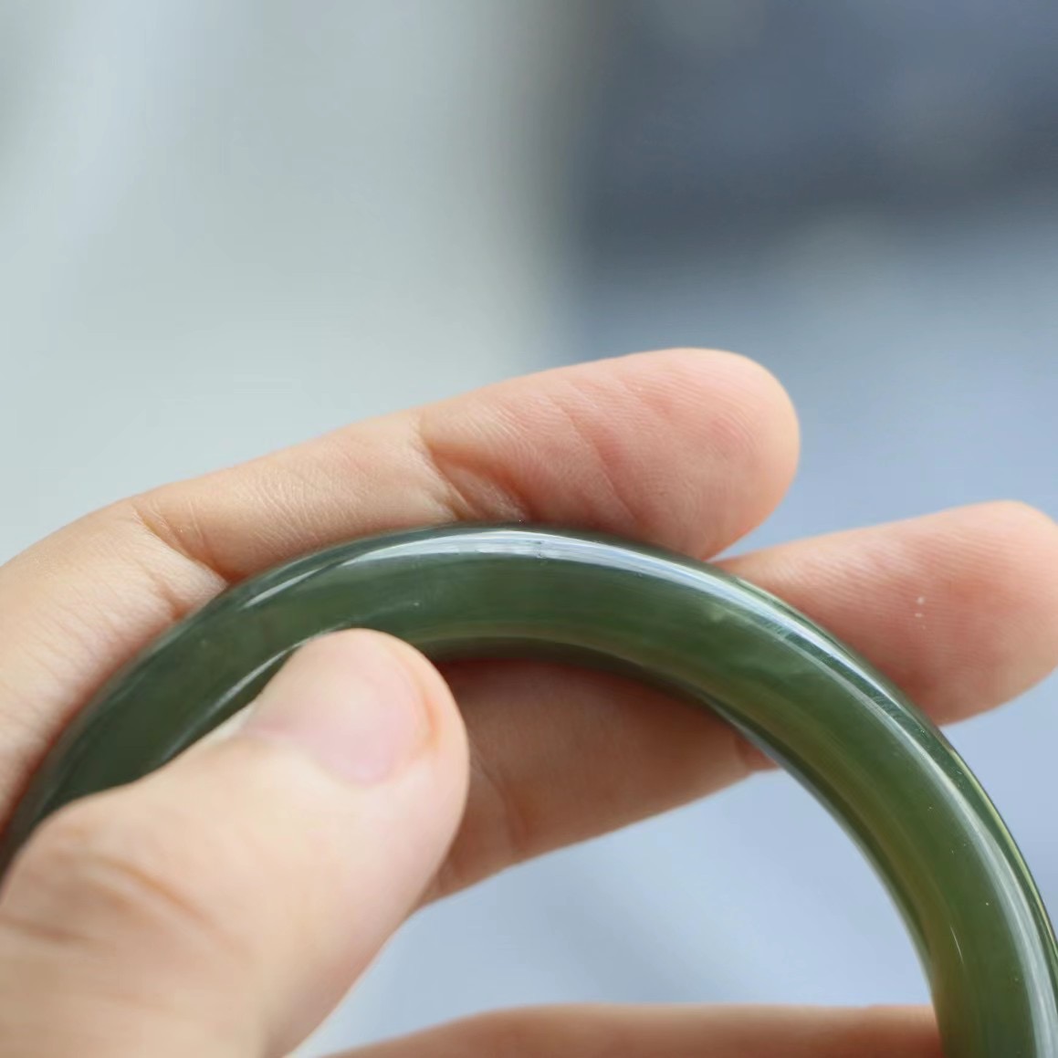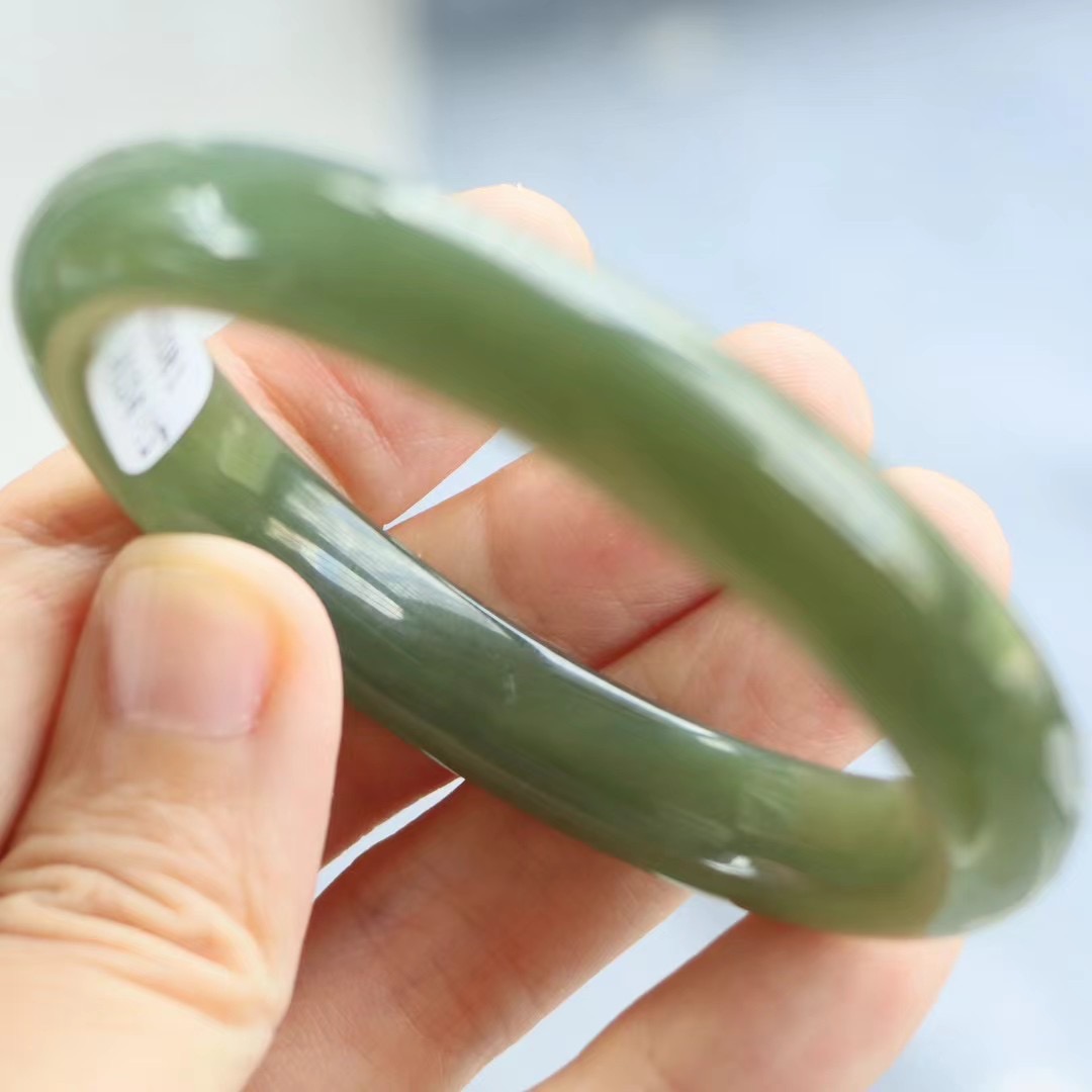 保真天然和田玉手镯55圈口证8124134和田玉湖绿色 青海料